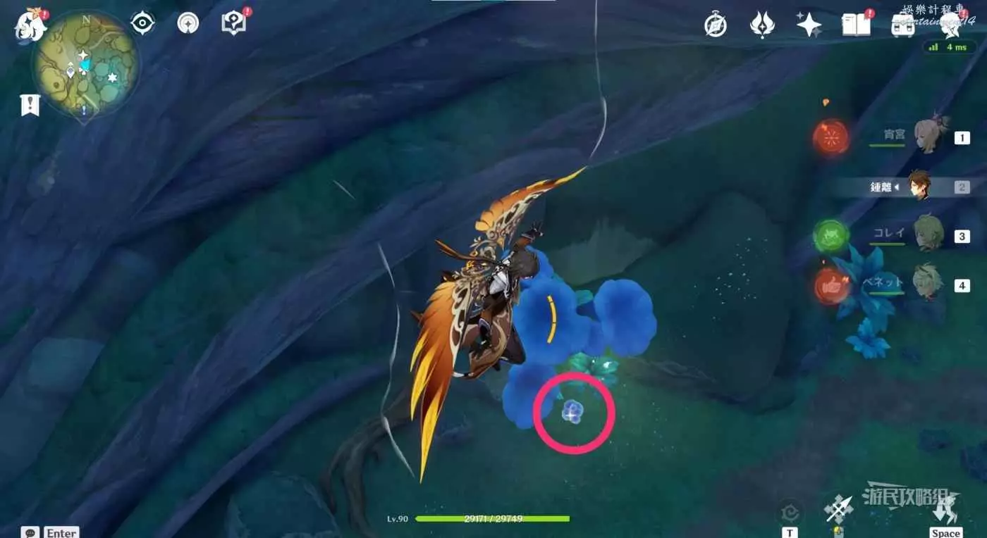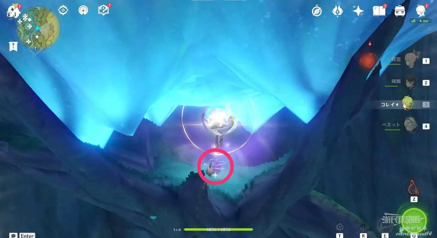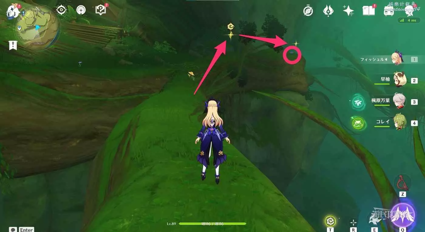 返回此路線最開始的傳送錨點,往下方平台費可以看到4個。