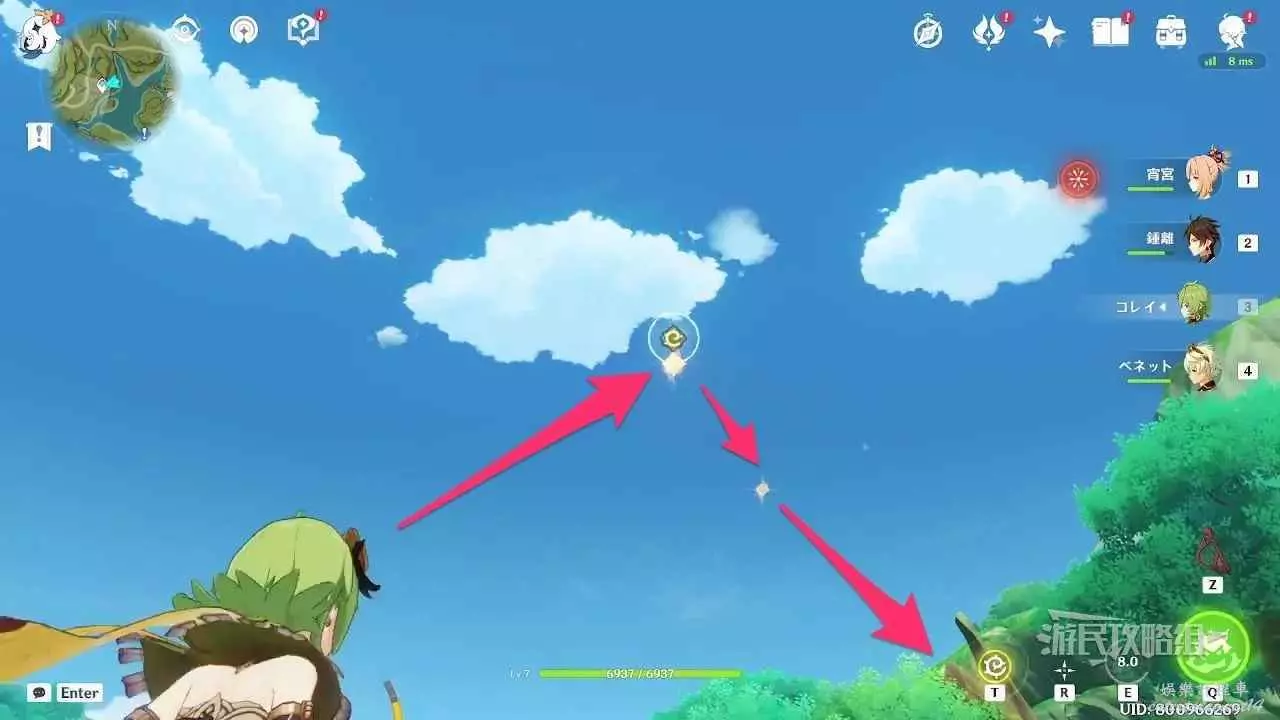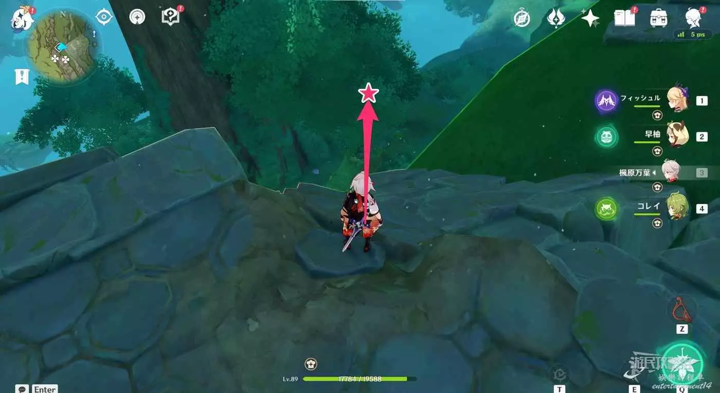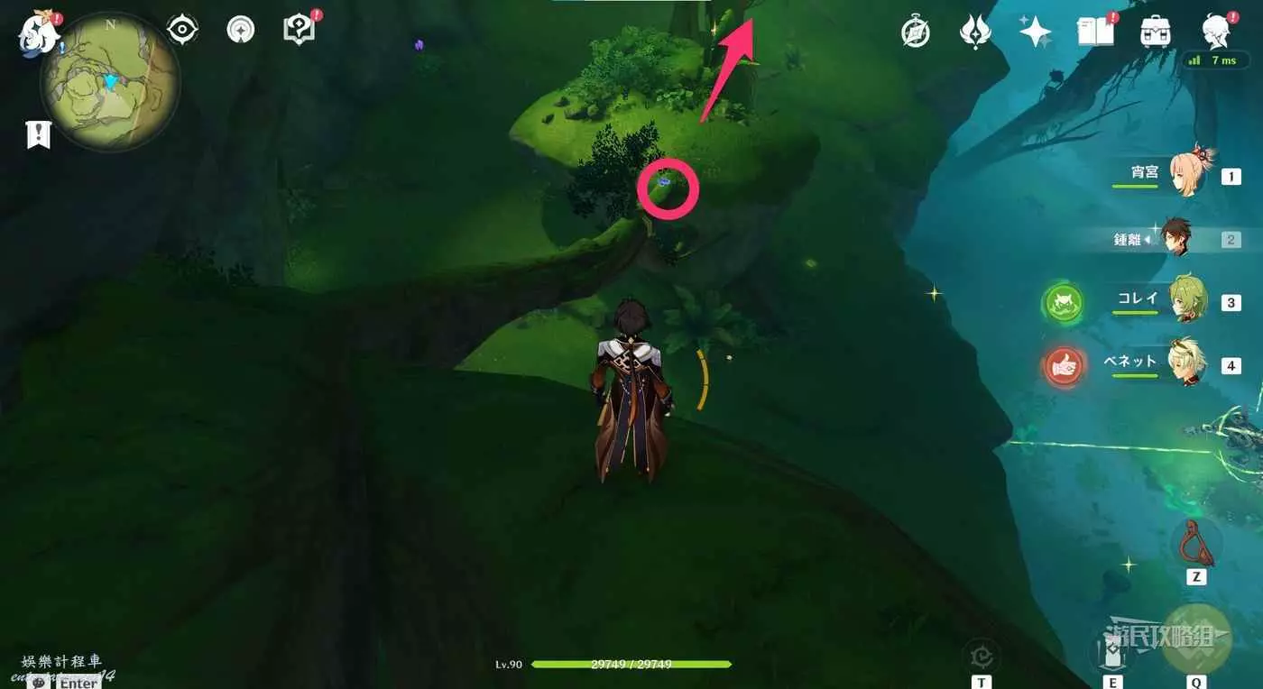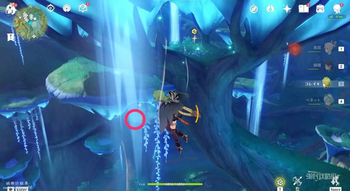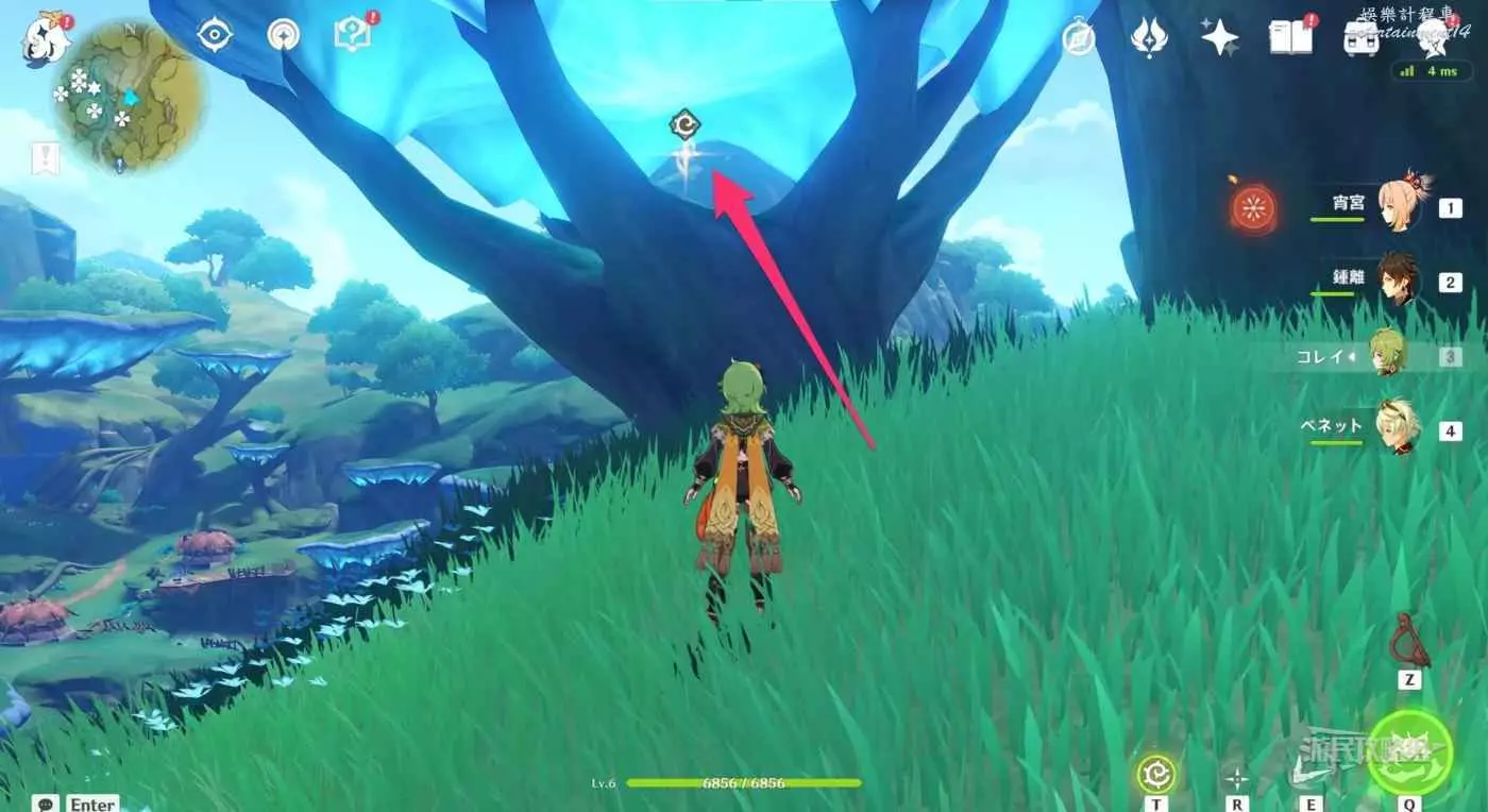 使用下圖標記的四葉印到達巨樹樹頂。