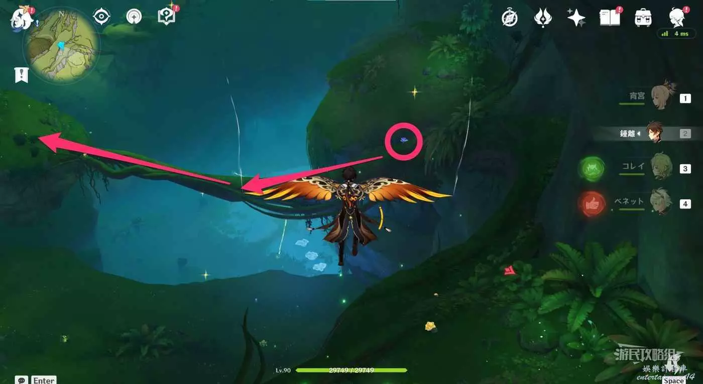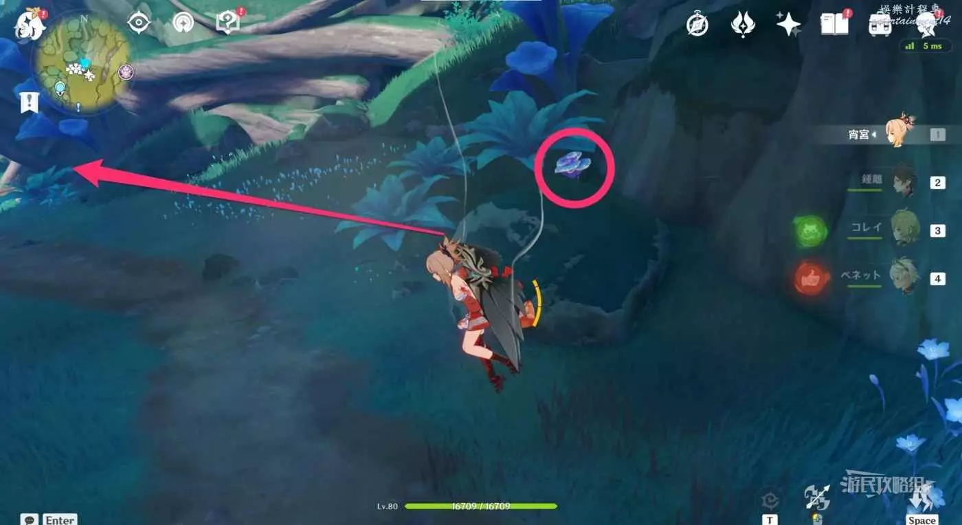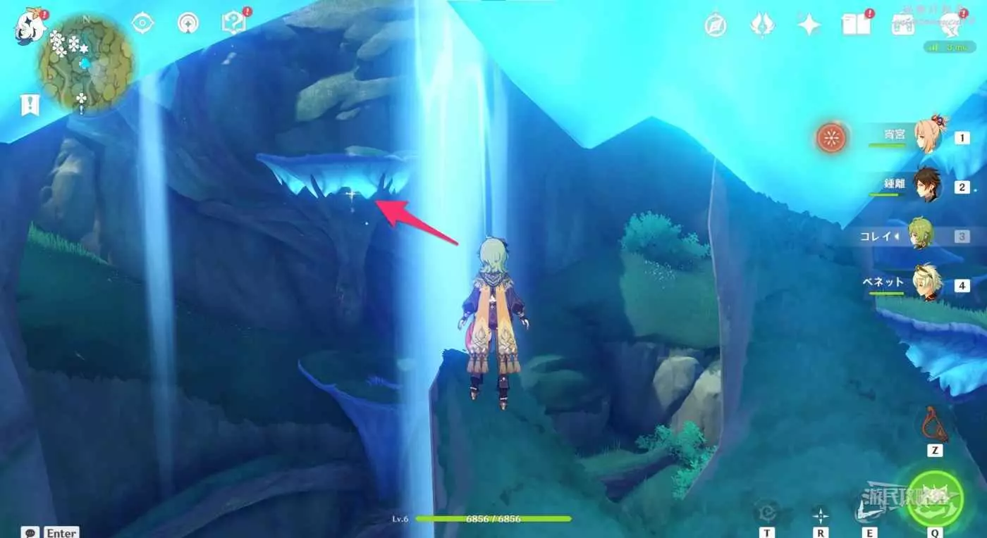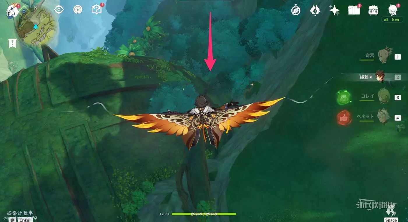 再次返回此路線最開始的傳送錨點,往下圖箭頭所示位置飛。