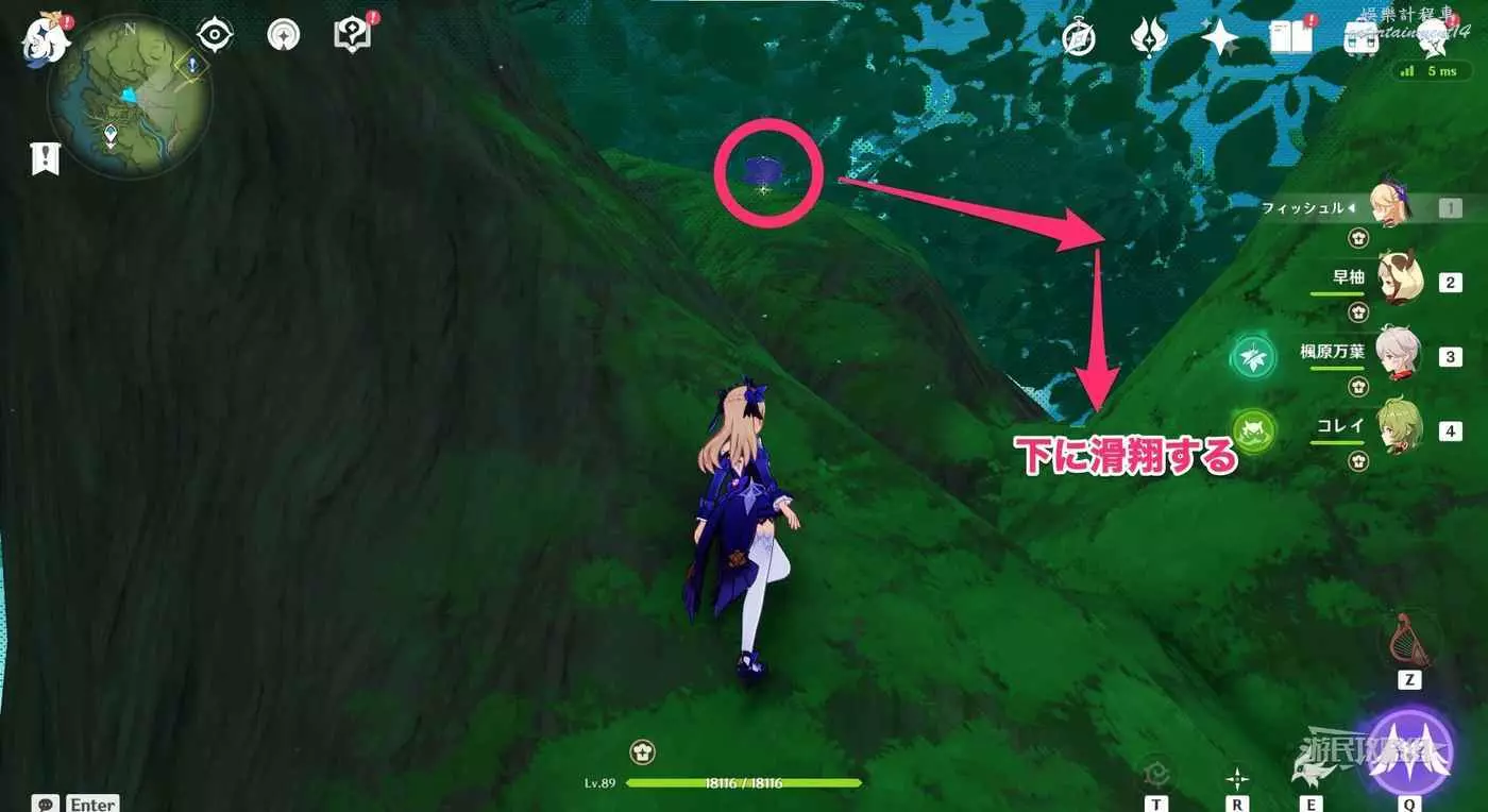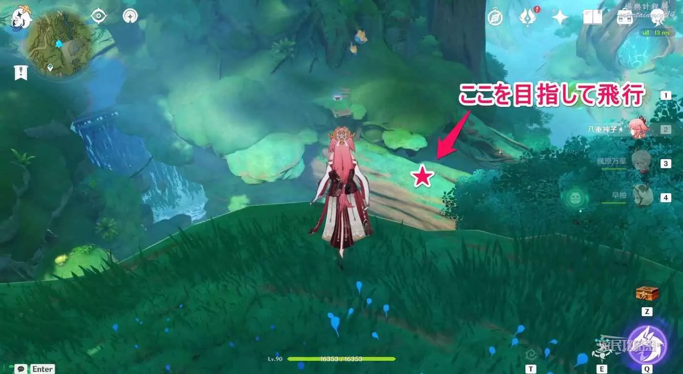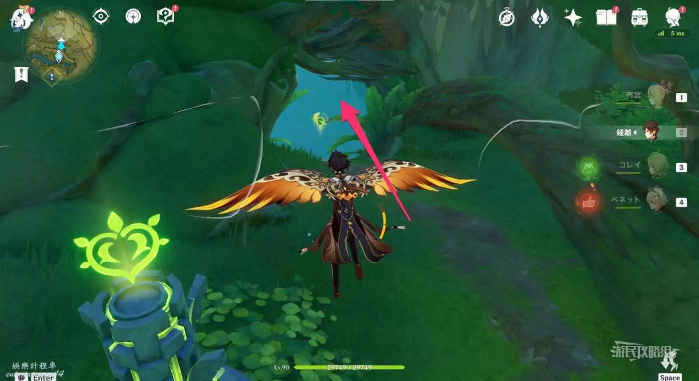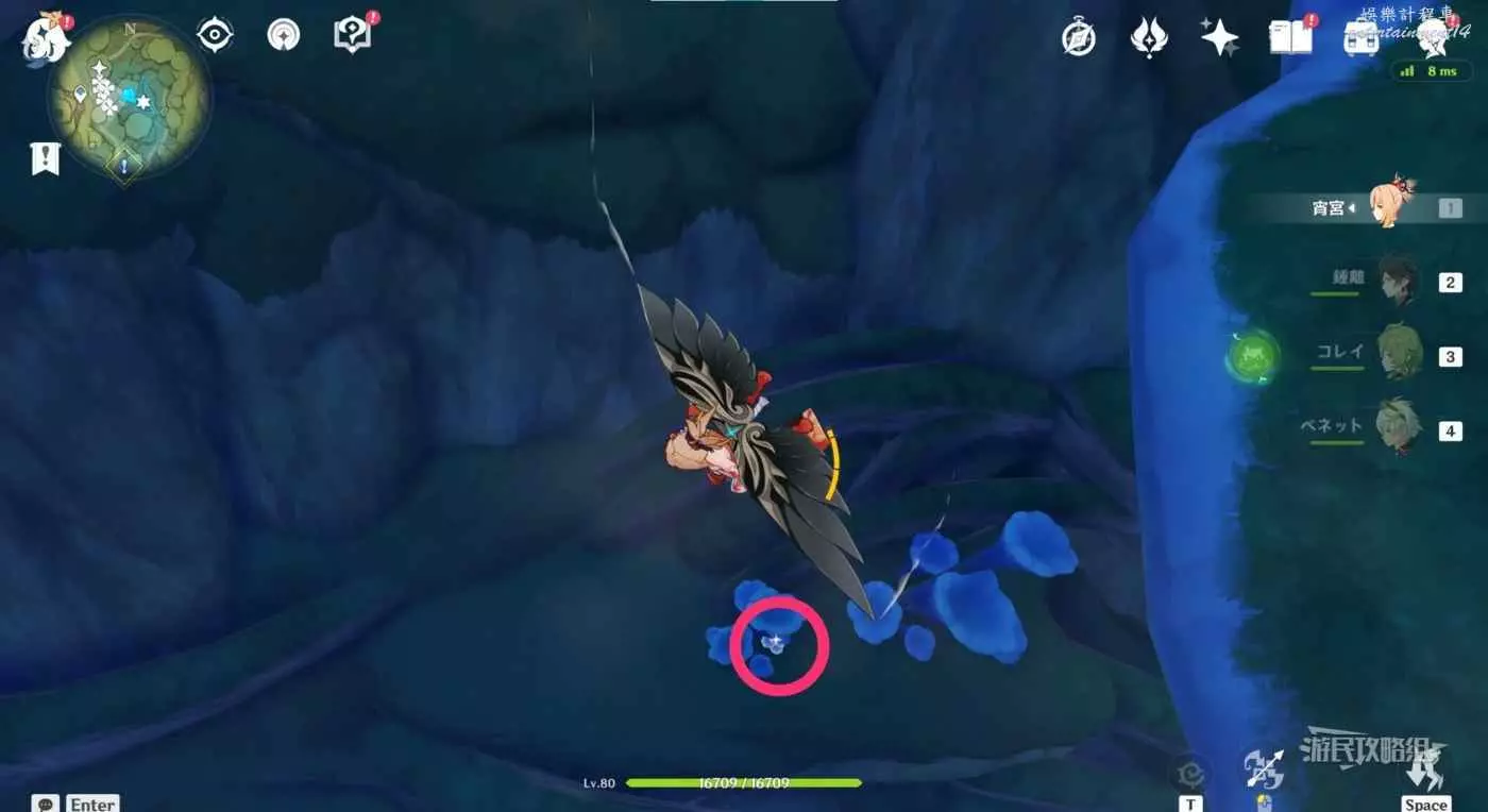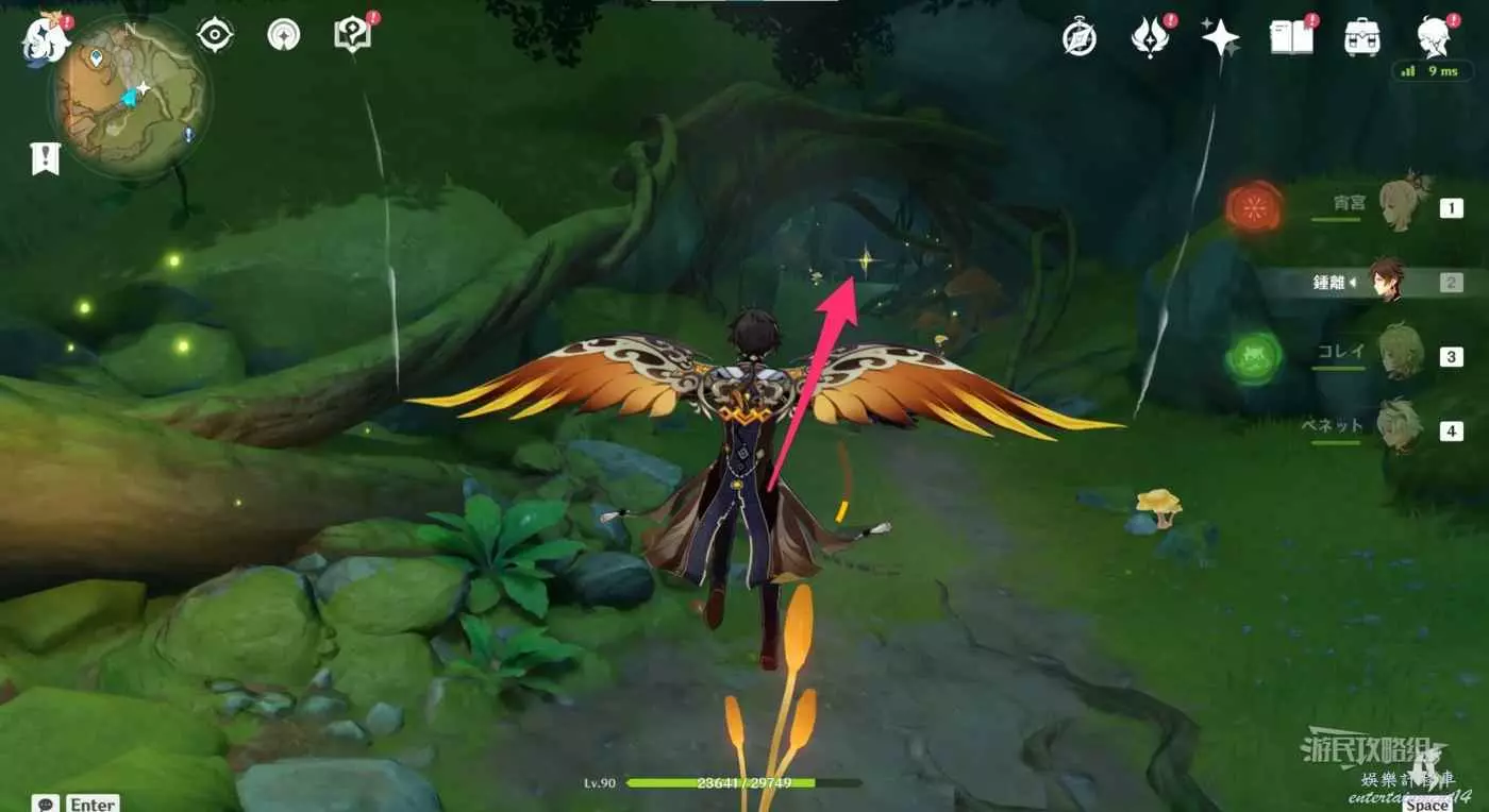 再次返回此路線最開始的傳送錨點,往下圖箭頭所示位置飛。