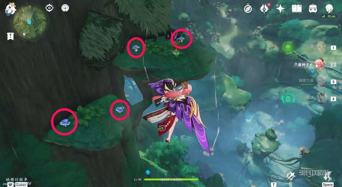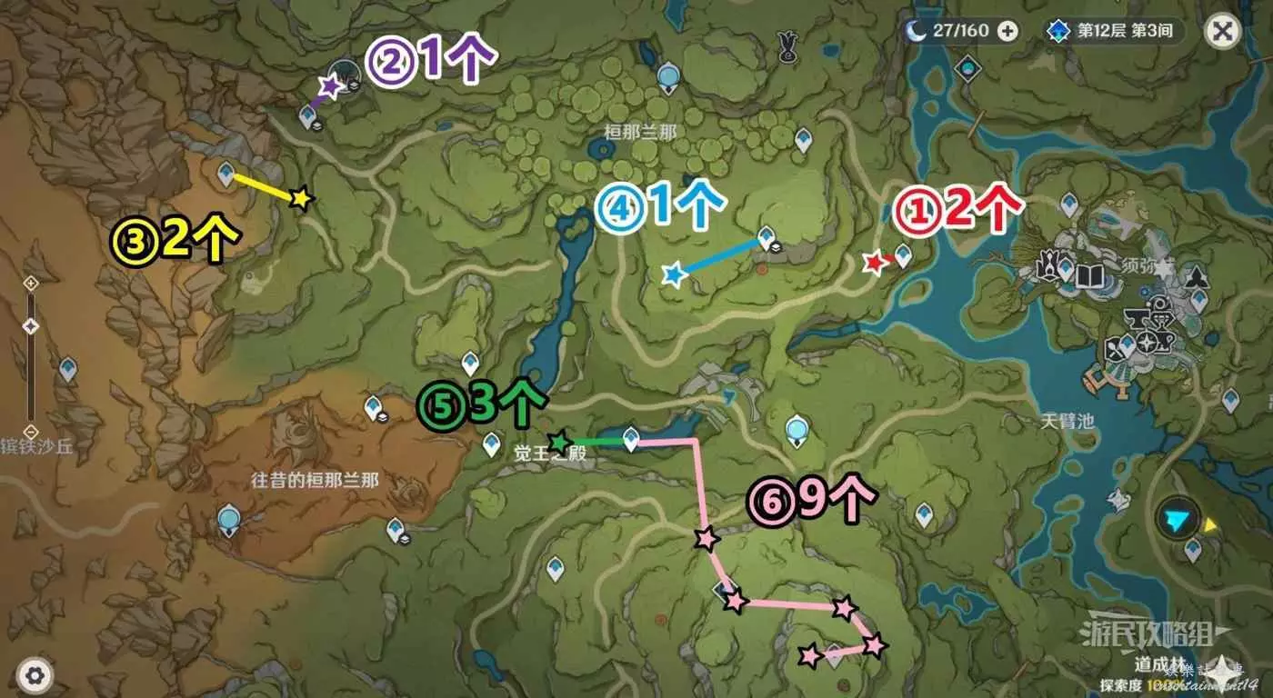 ※下方介紹的是全部76個樹王聖體菇中的70個收集路線,培養1名角色需要168個樹王聖體菇,可以分3次收集。