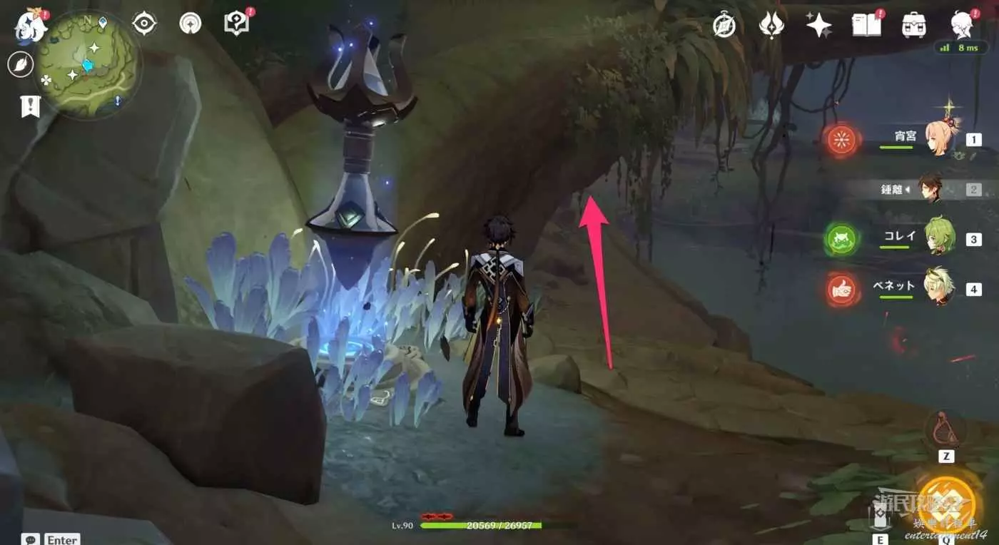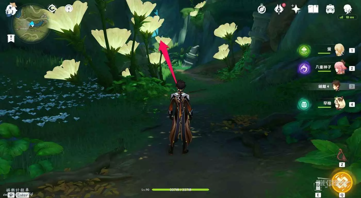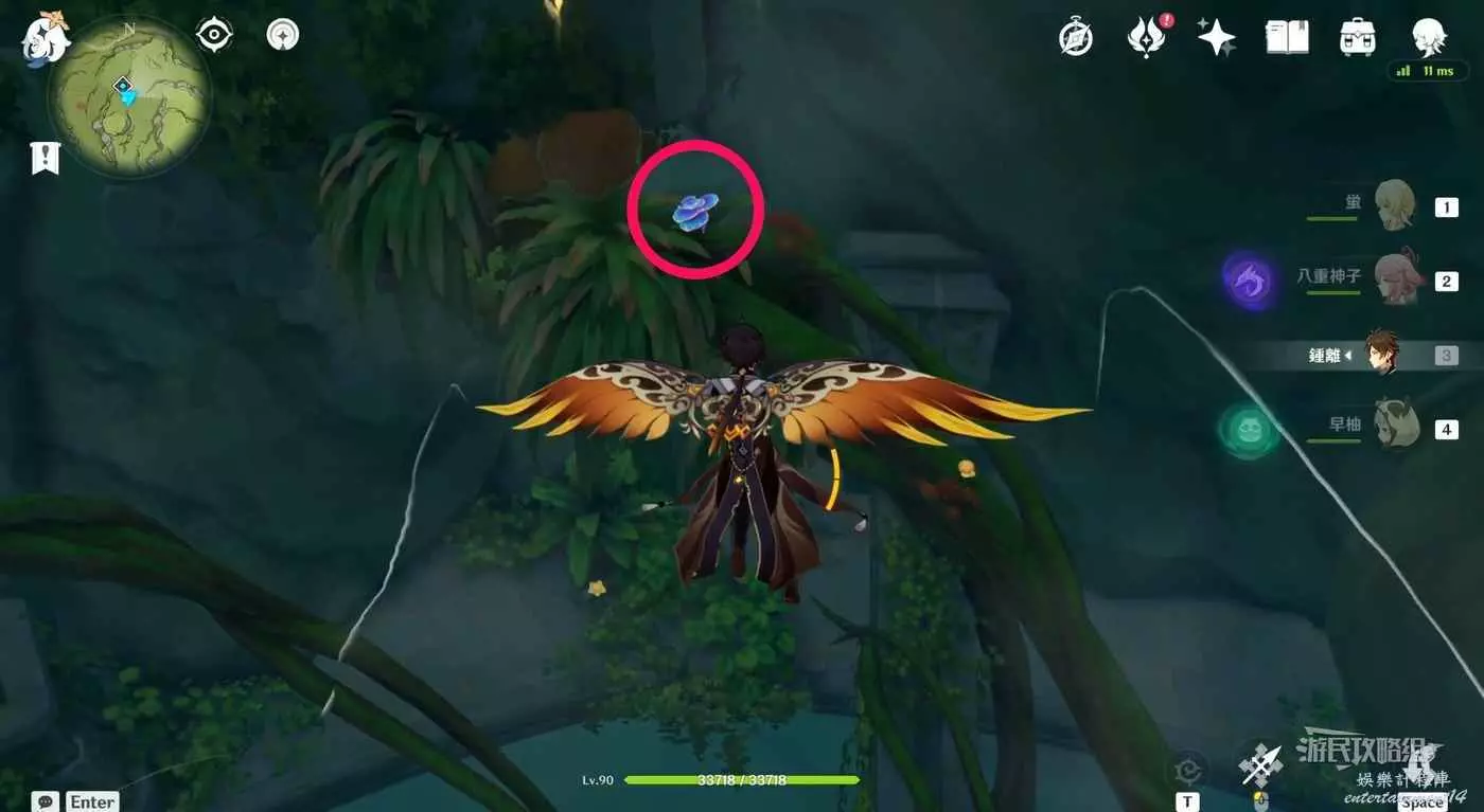 進入洞窟後前方有1個樹王聖體菇,拾取後沿著樹枝往左走。
