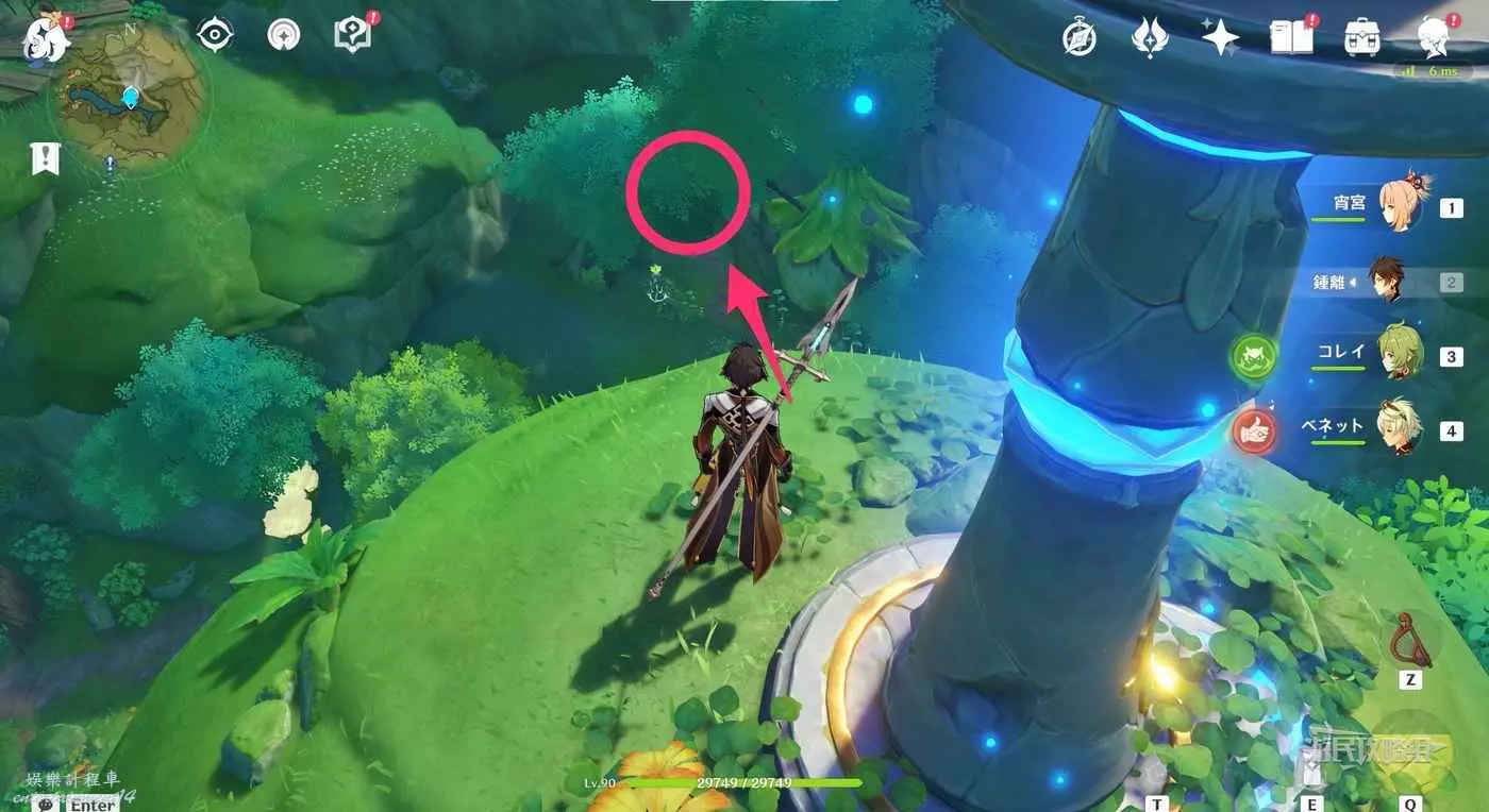 用草元素啟動須彌城西邊傳送錨點東邊的草元素機關。