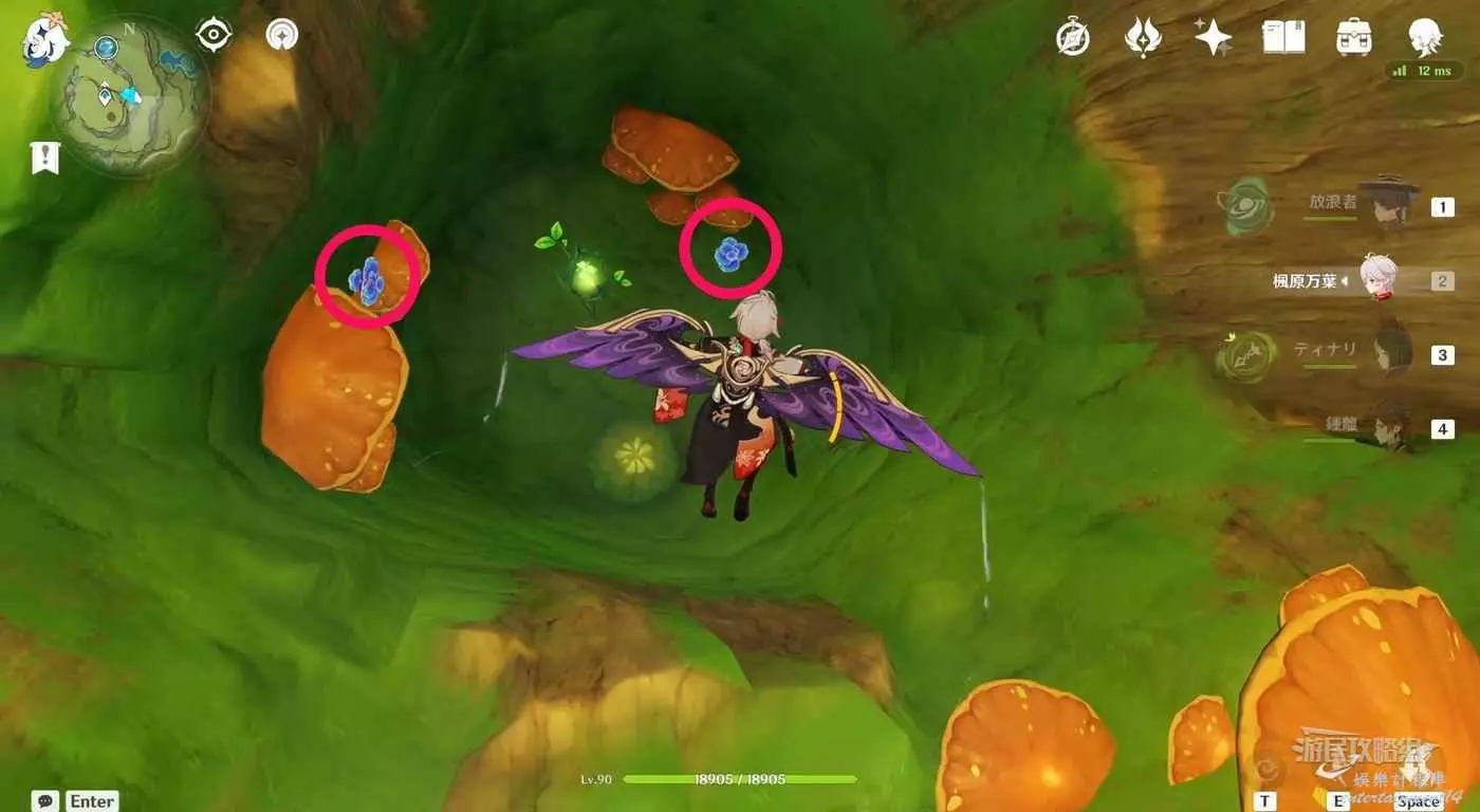 在往下飛的過程中可以在樹邊的蘑菇傘上可以看到2個。拾取之後繼續往下飛。