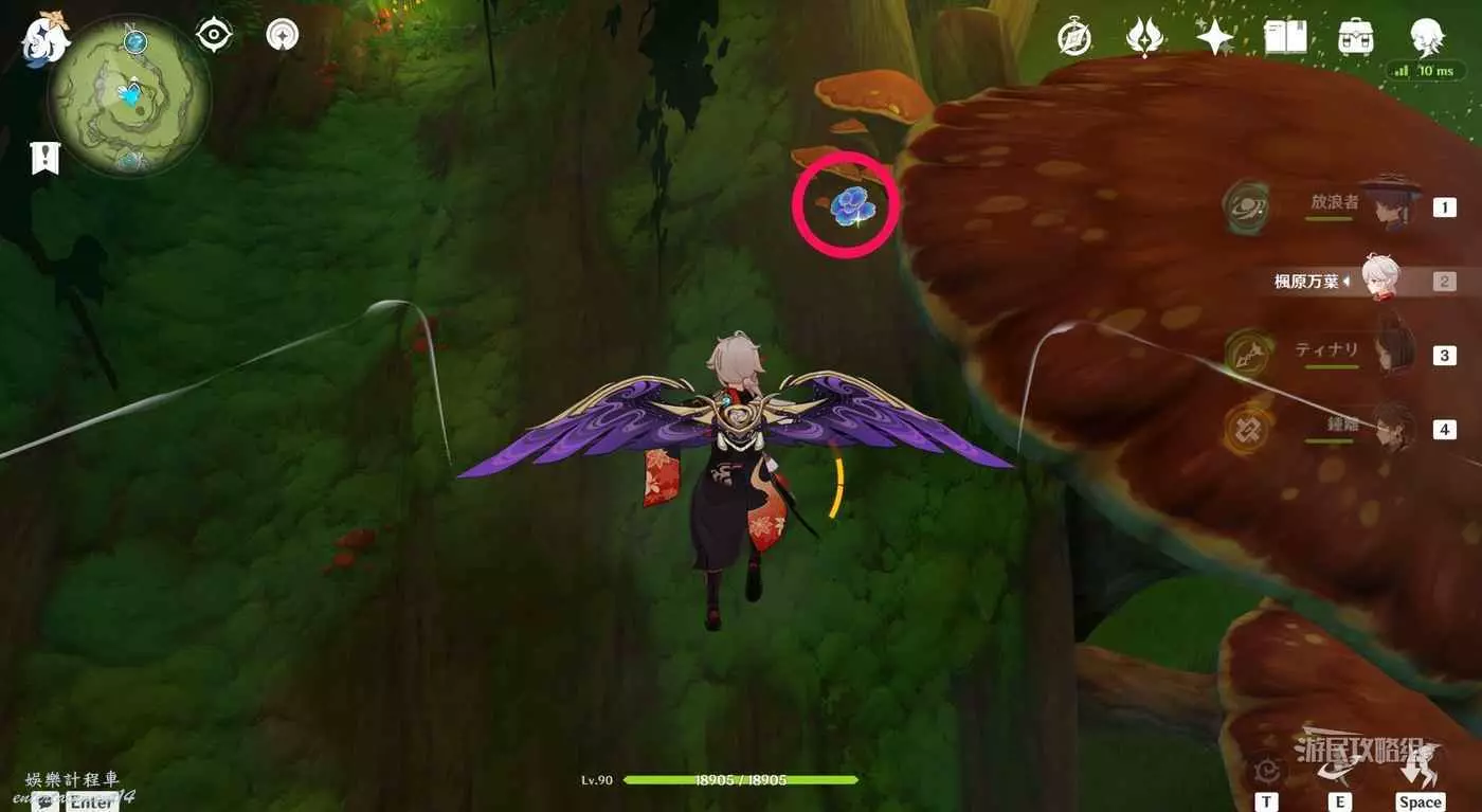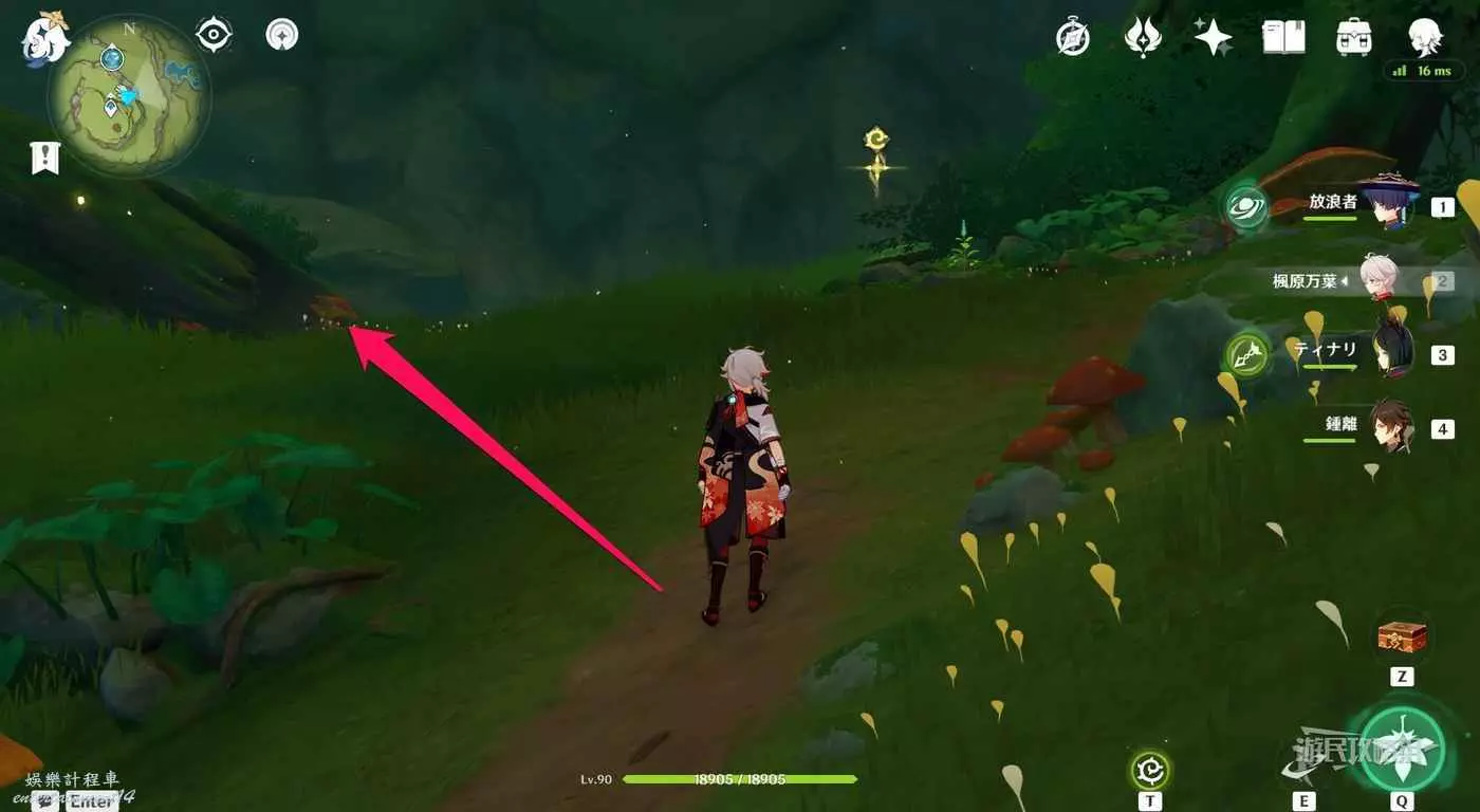從無郁稠林西邊傳送錨點往東北方向,下圖的巨大蘑菇位置飛。