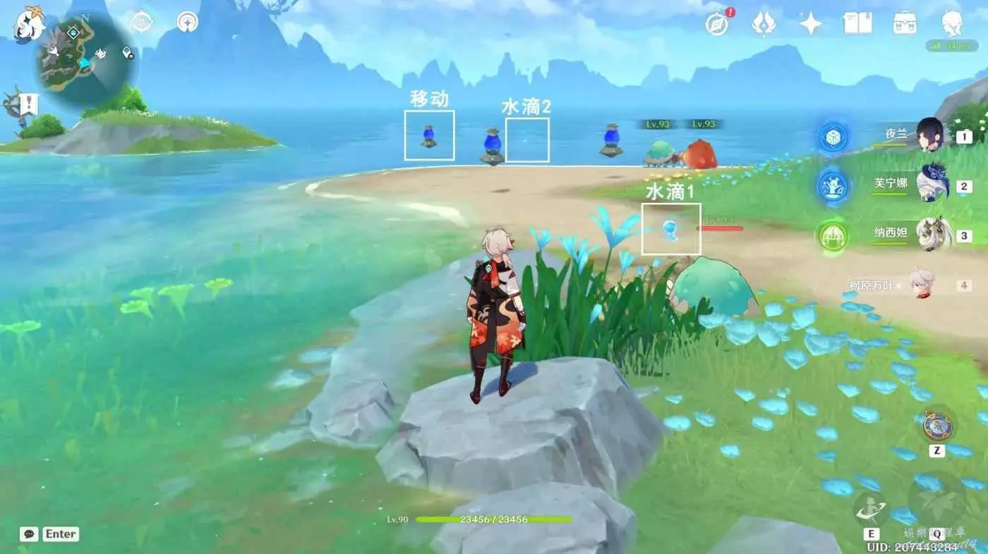 1.拾取水滴1和水滴2,互動不會移動的偵測晶體;