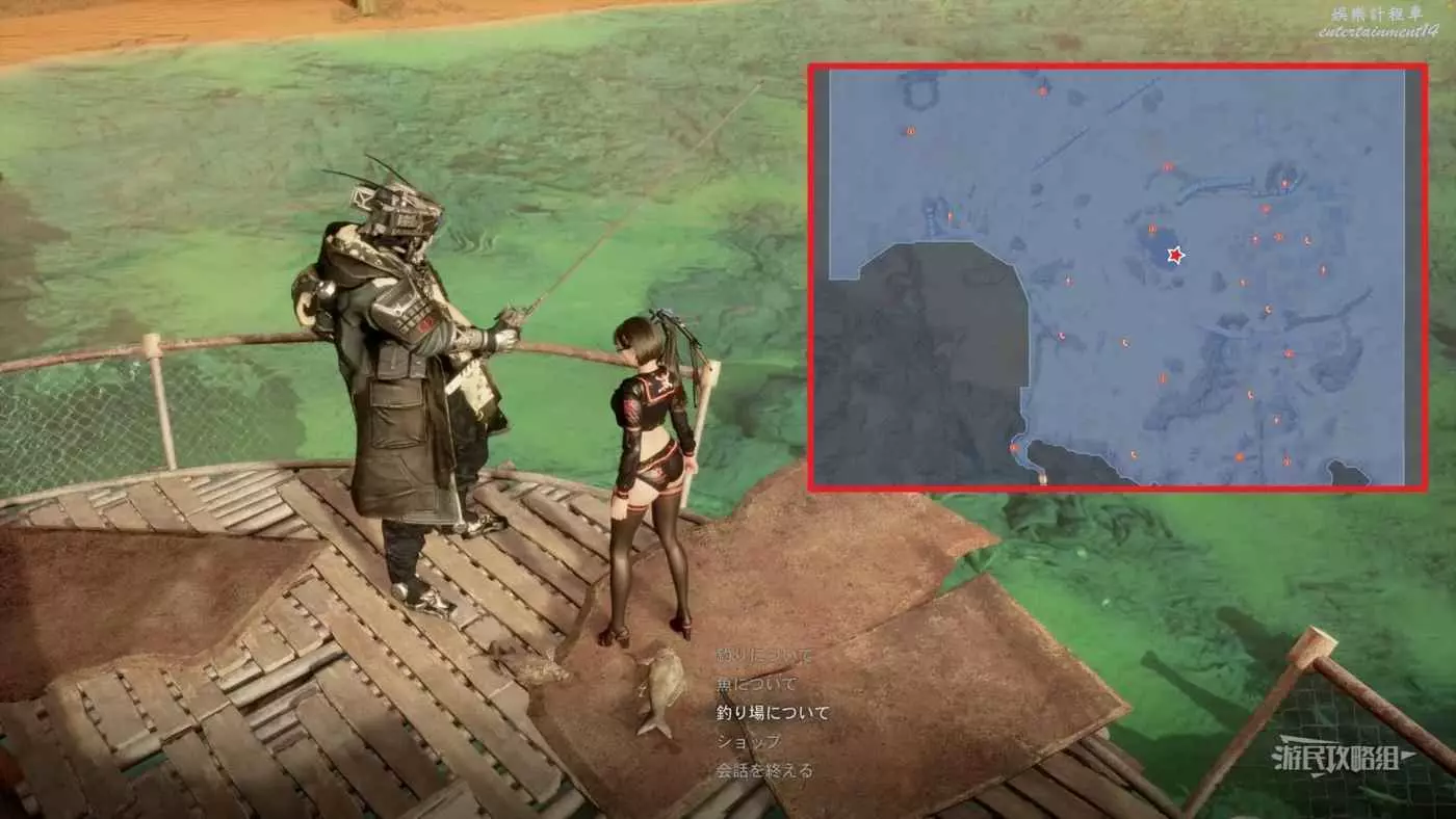 廢土工廠的水庫中雖然無法看到有魚在遊,但實際上是可以釣魚的,注意需要先擊敗入口處的敵人,否則就會一直處於戰鬥狀態,無法釣魚。