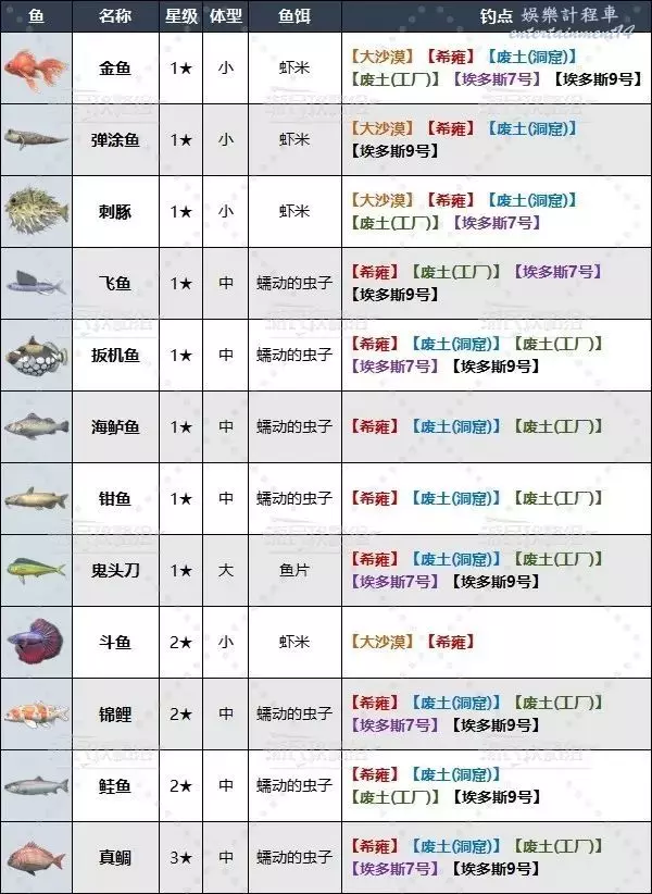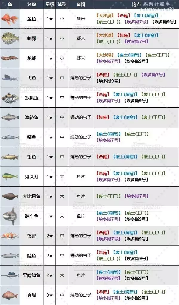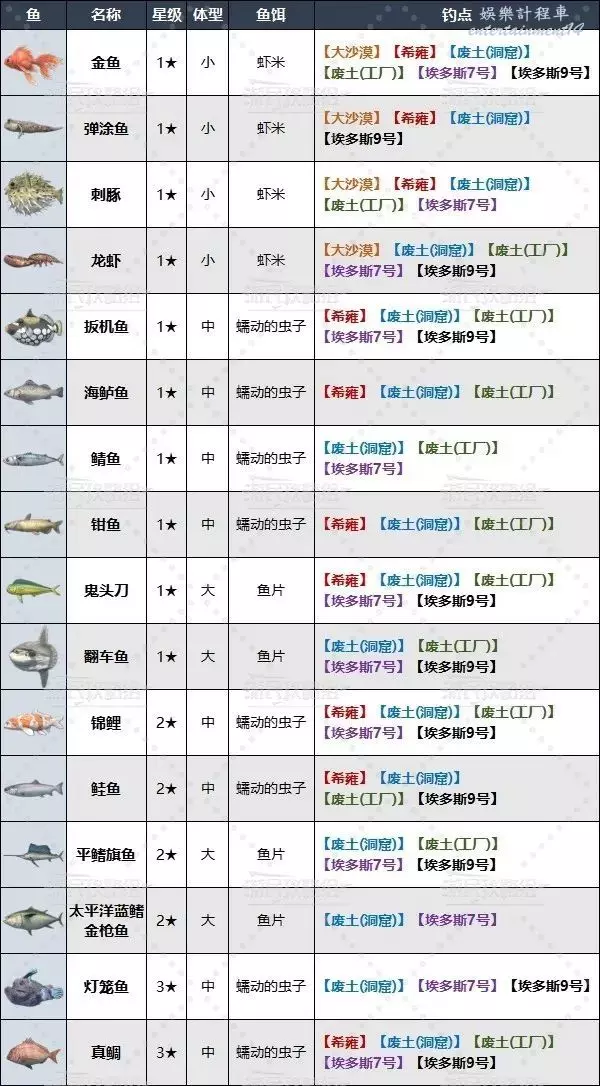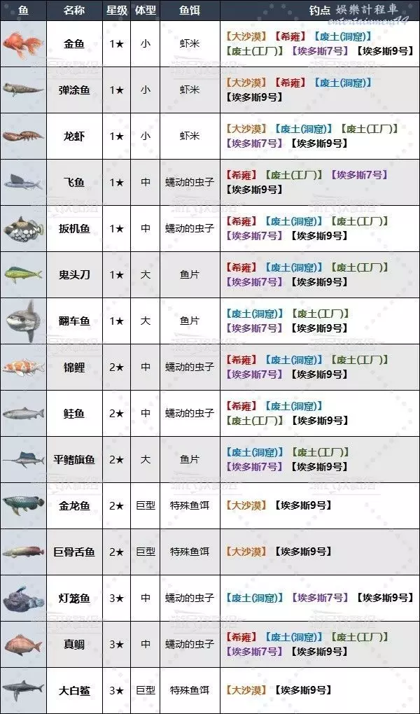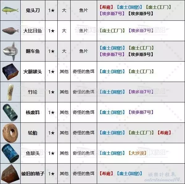 廢土工廠釣魚點及可釣魚類