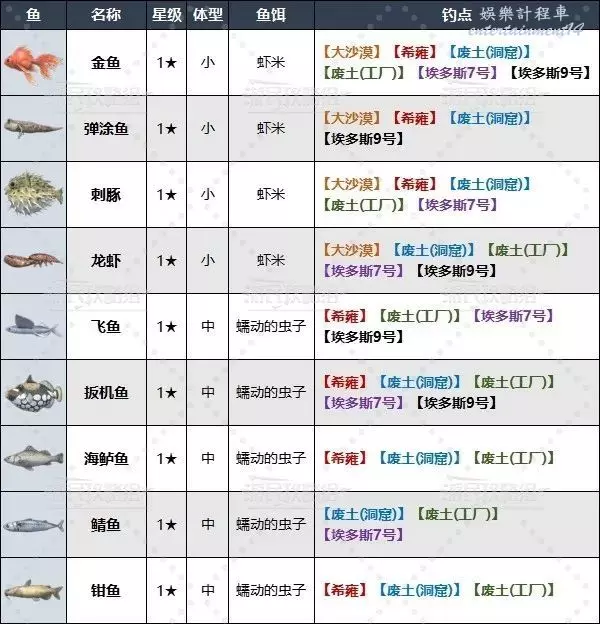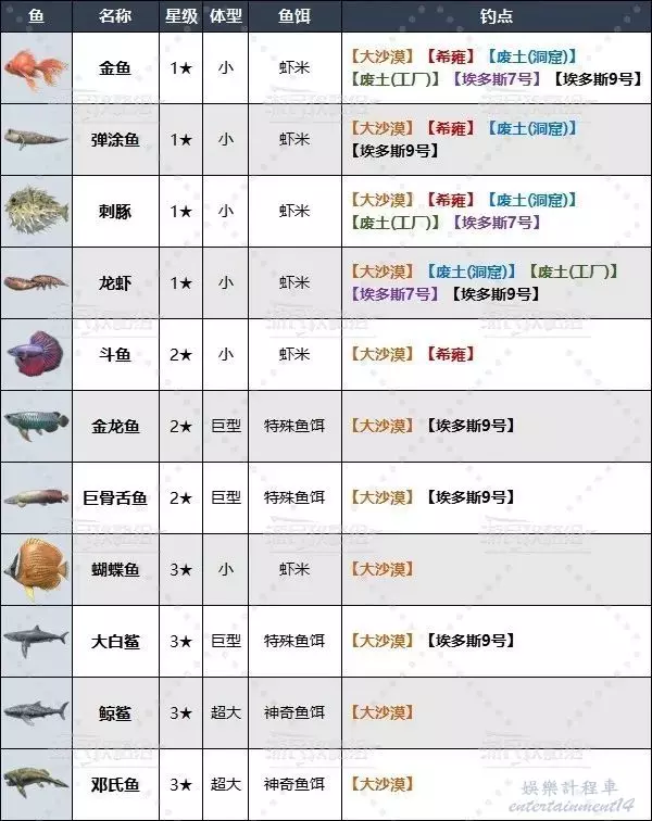廢土洞窟釣魚點及可釣魚類