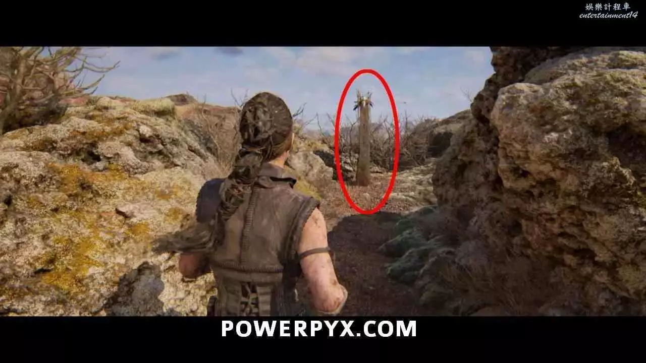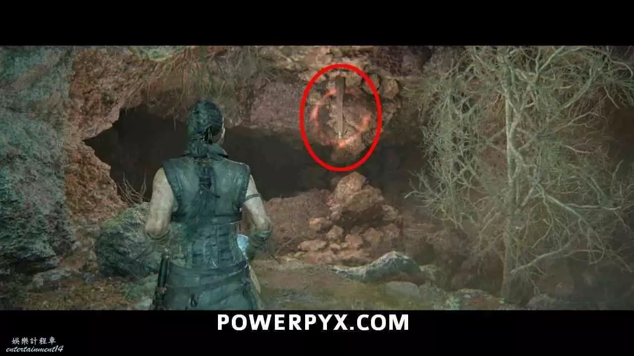 解開將3個球放在底座上的謎題後,穿過兩個壁架往下跳到下一個區域,穿過主路上的兩個水坑,然後左轉,擠過1個缺口,後方小路上即可看到這個聖柱。