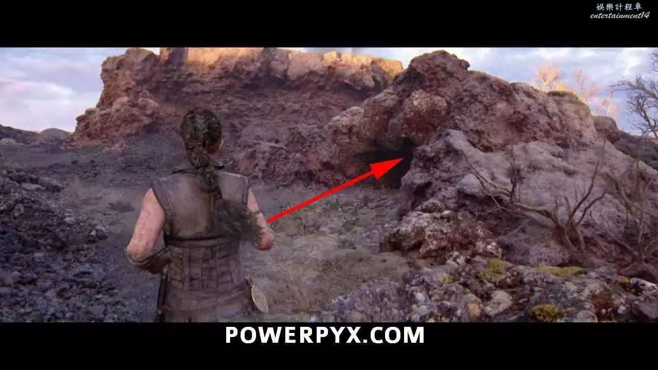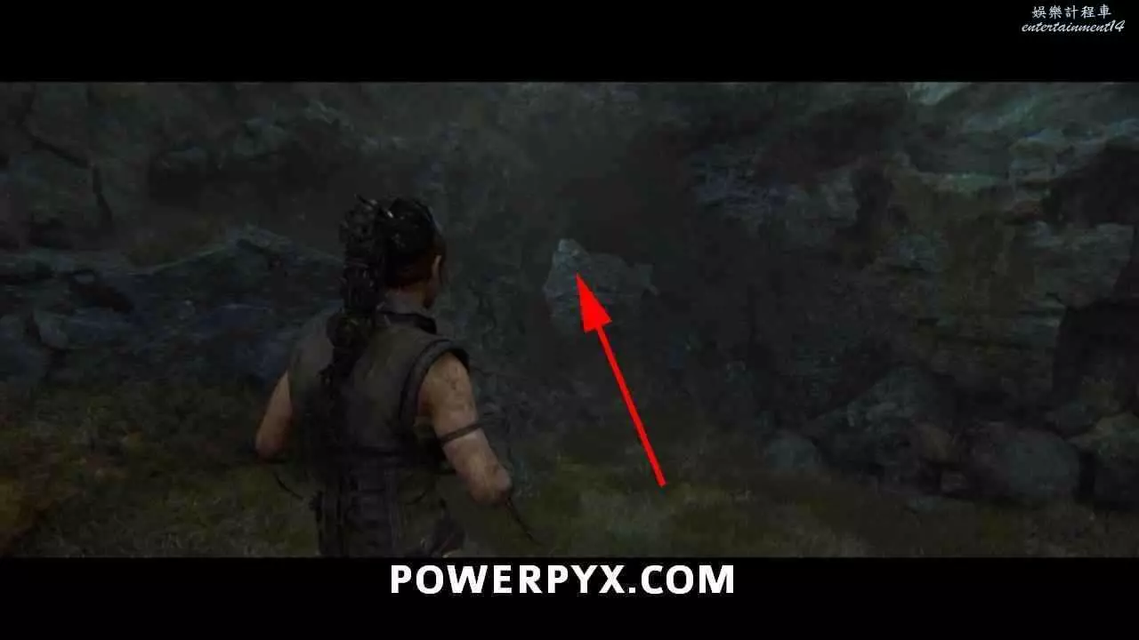 在章節開始後不久可以看到,遊玩大約1分鐘會跟丟同行的二人,繼續前進直到先下坡後上坡,觸發旁白,上坡後右轉進入有瀑布的山洞,再右轉沿著水流即可找到聖柱。