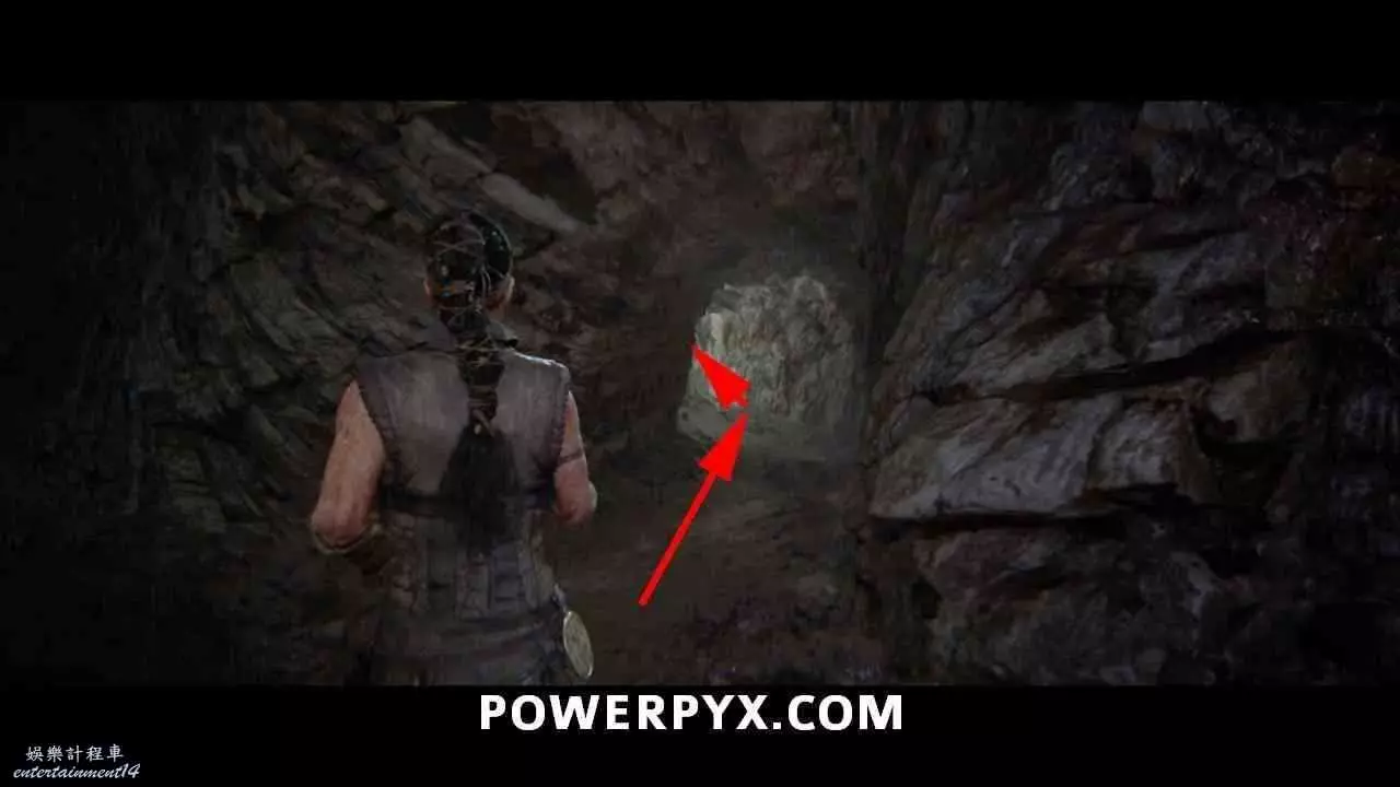 在本章節開頭的山洞中,數到跳下3個壁架處(劇情路線),因為在跳第四個壁架之後會掉進一個小水坑,所以從第三個壁架立即右轉爬上另一個壁架,即可到達聖柱所在位置。
