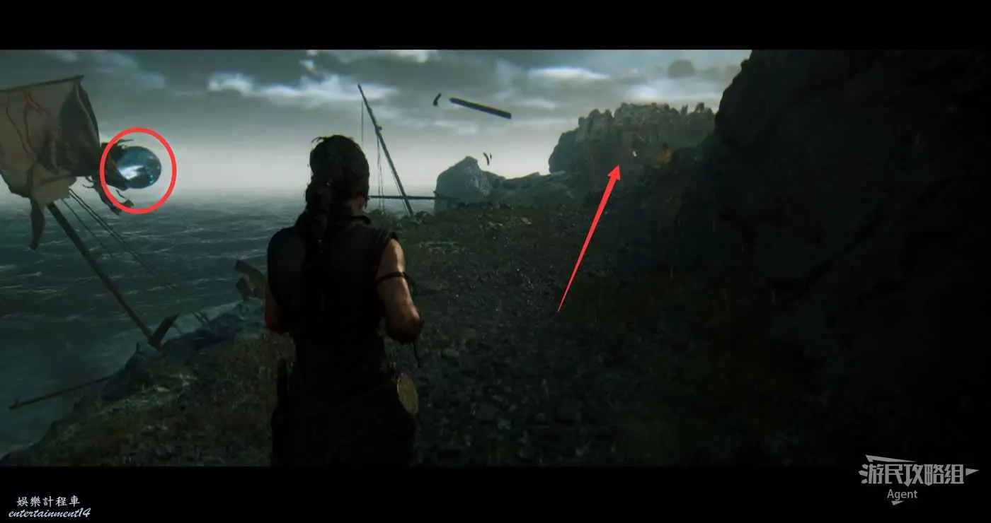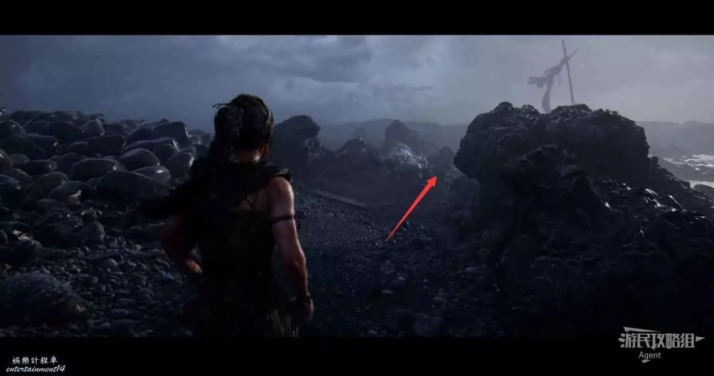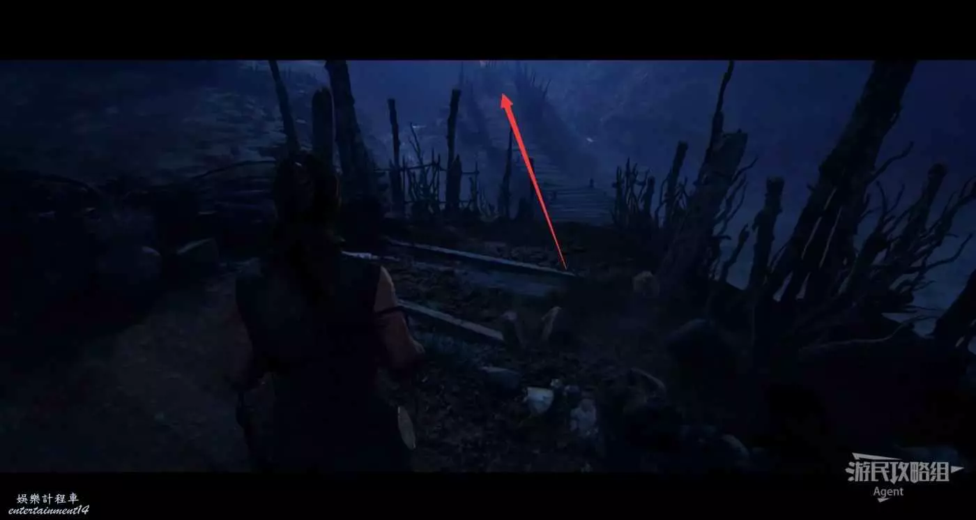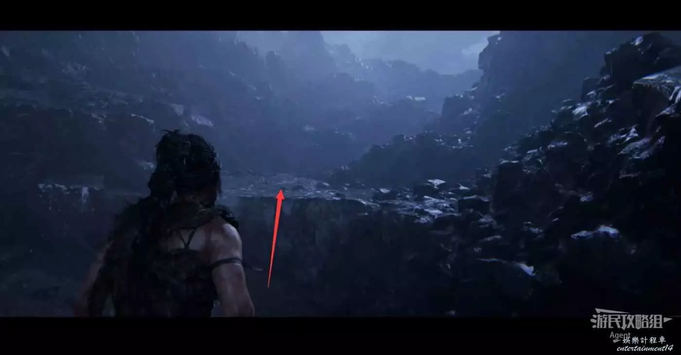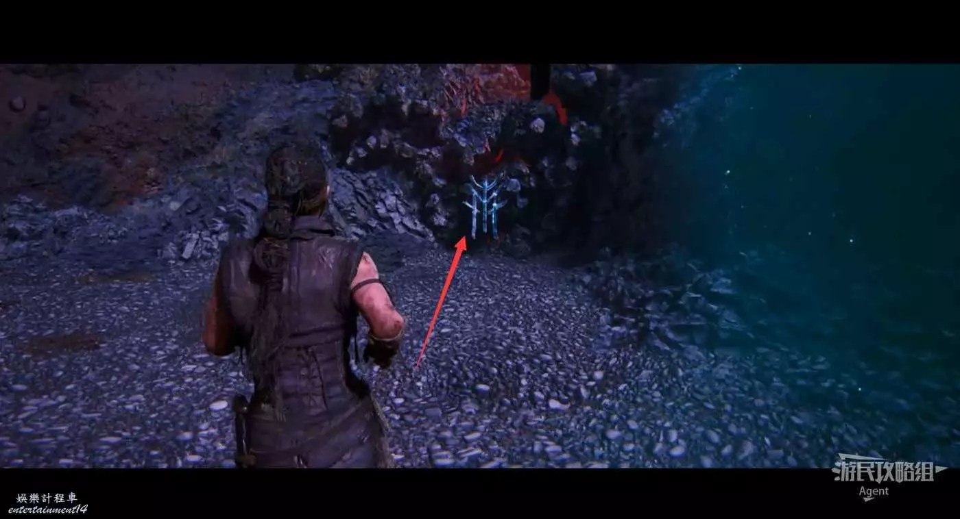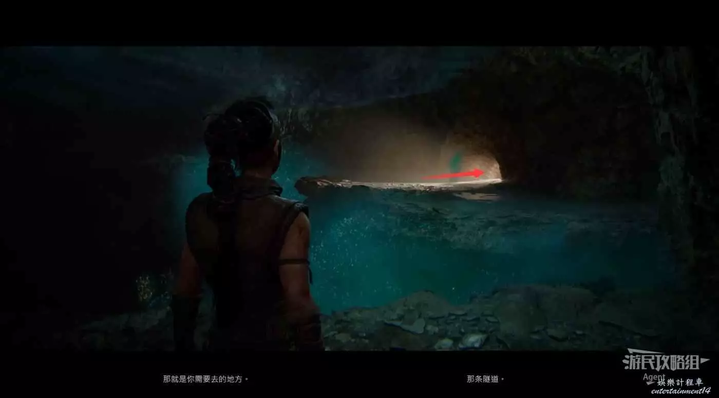 涉水往前走,到高處熄滅火盆,面前下方就會出現通路。
