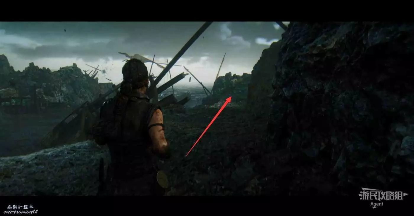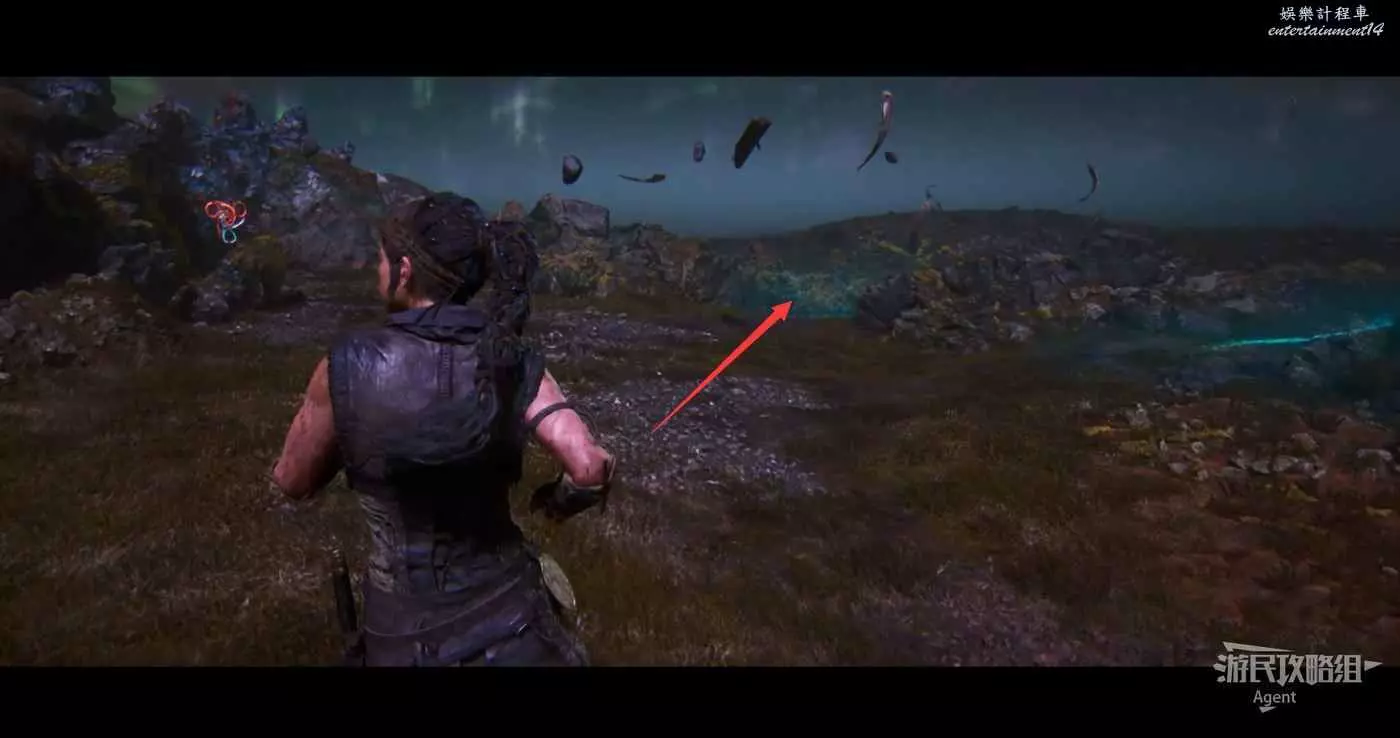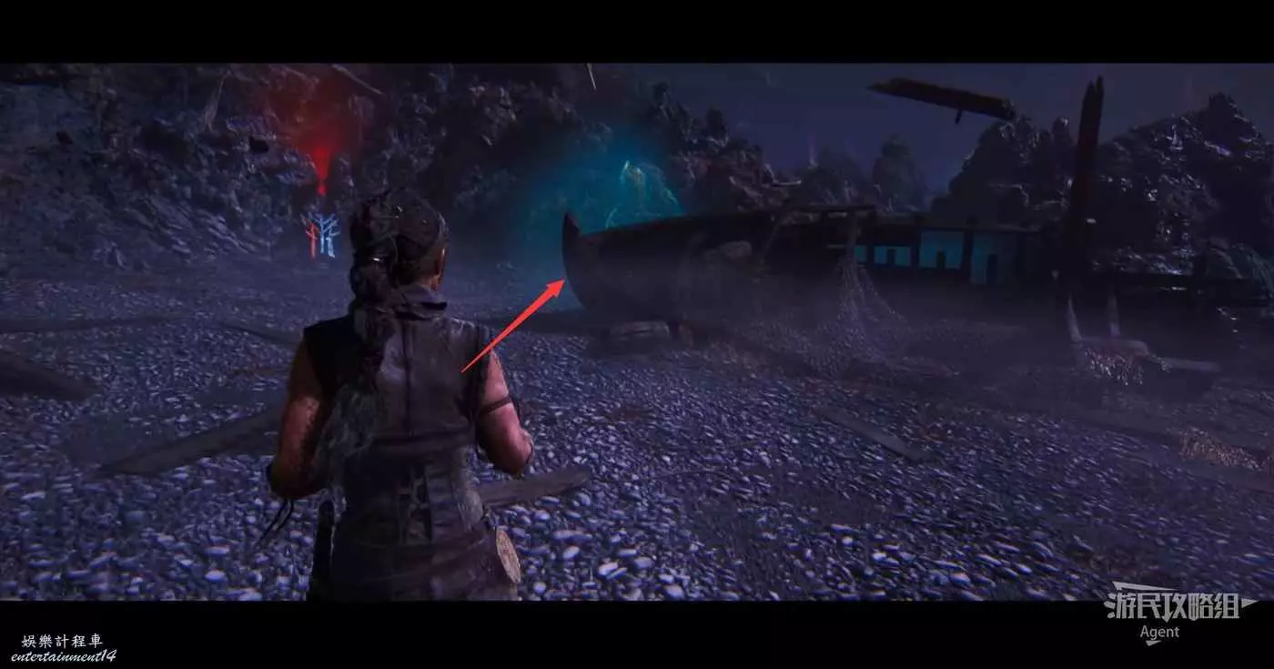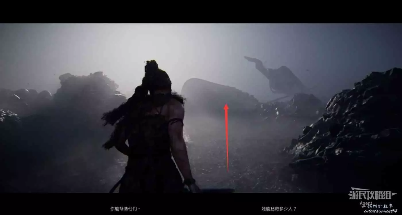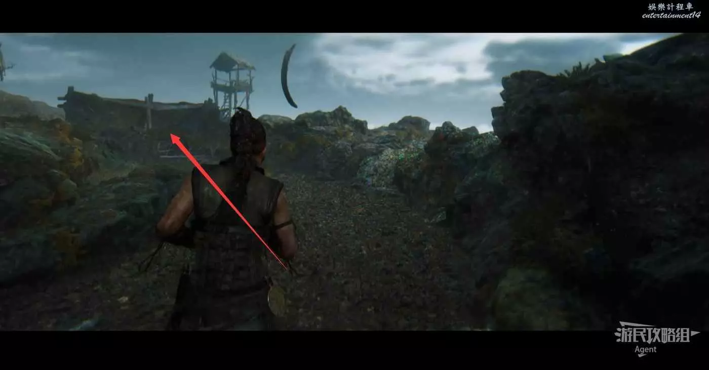 涉水往前走,到高處熄滅火盆,面前下方就會出現通路。