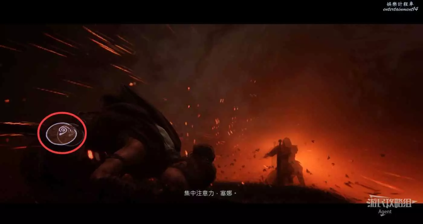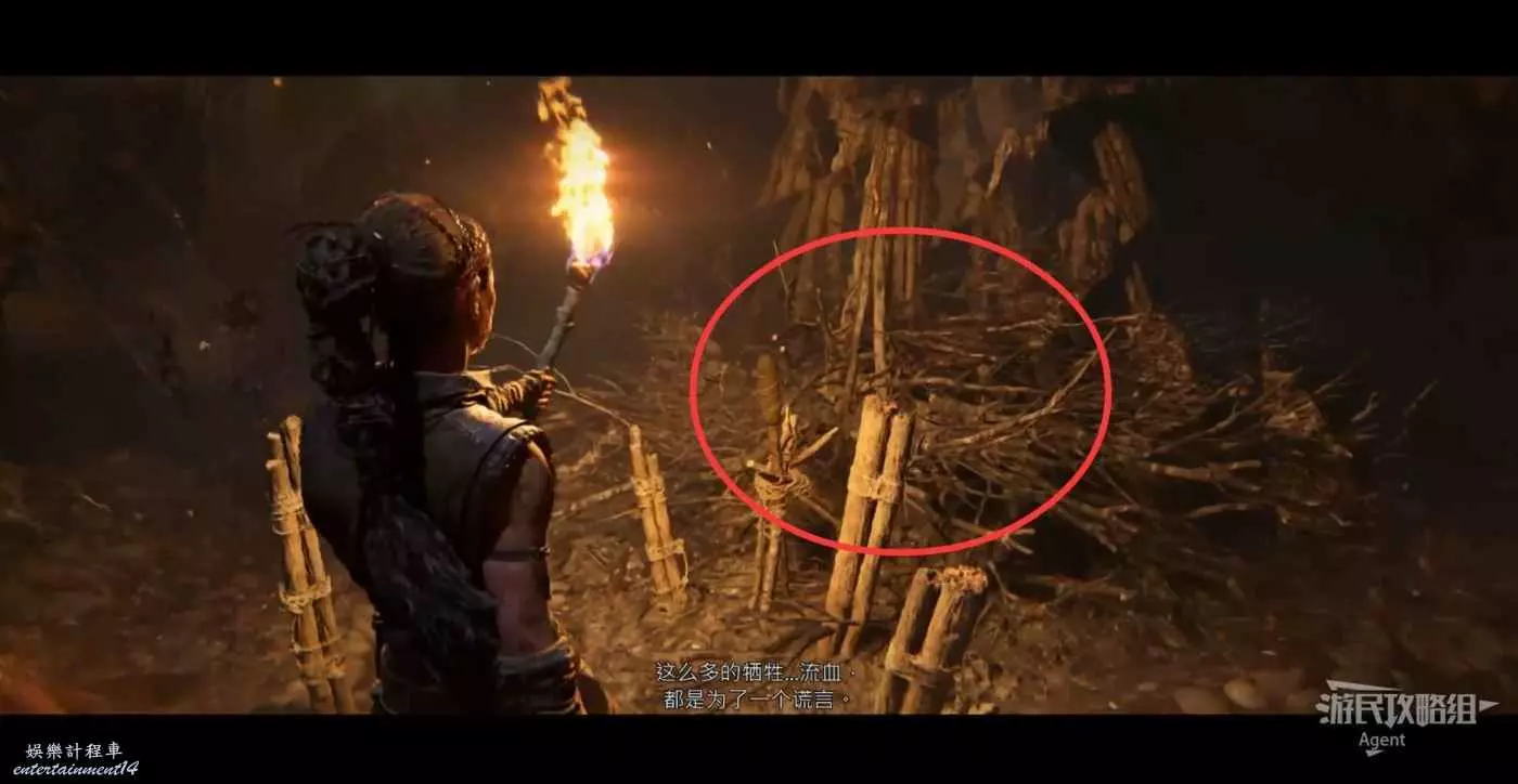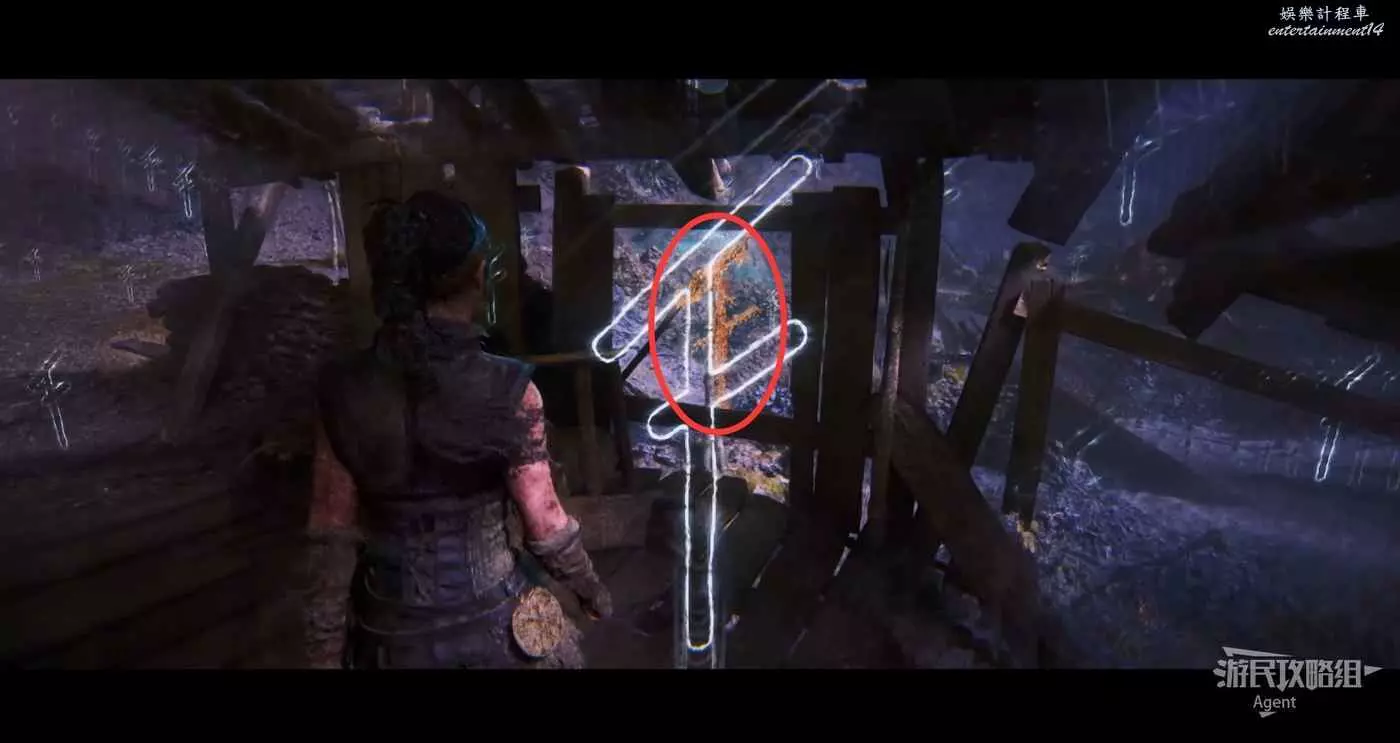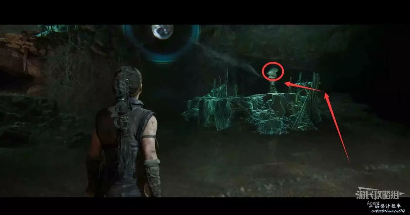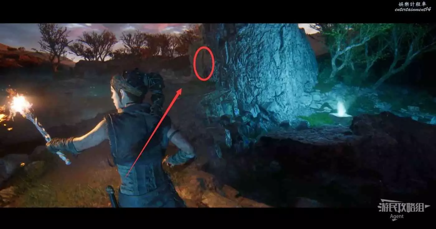 依次序重新點燃第一、第二個火盆,然後就可以抵達高處的圓洞了,把火把放進圓洞裡。
