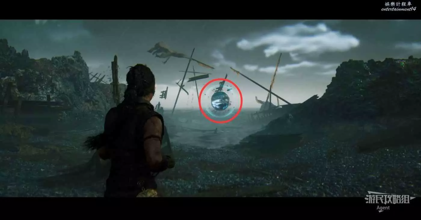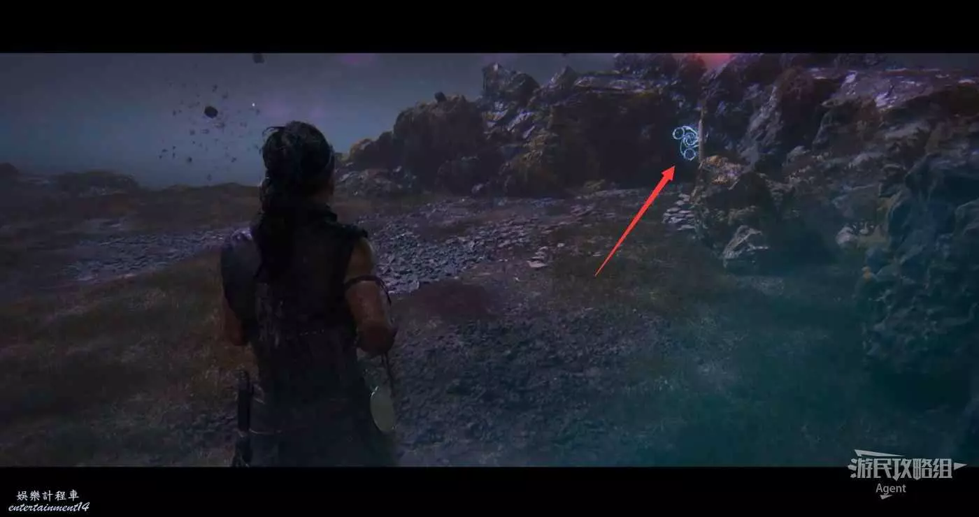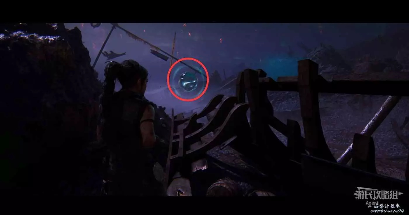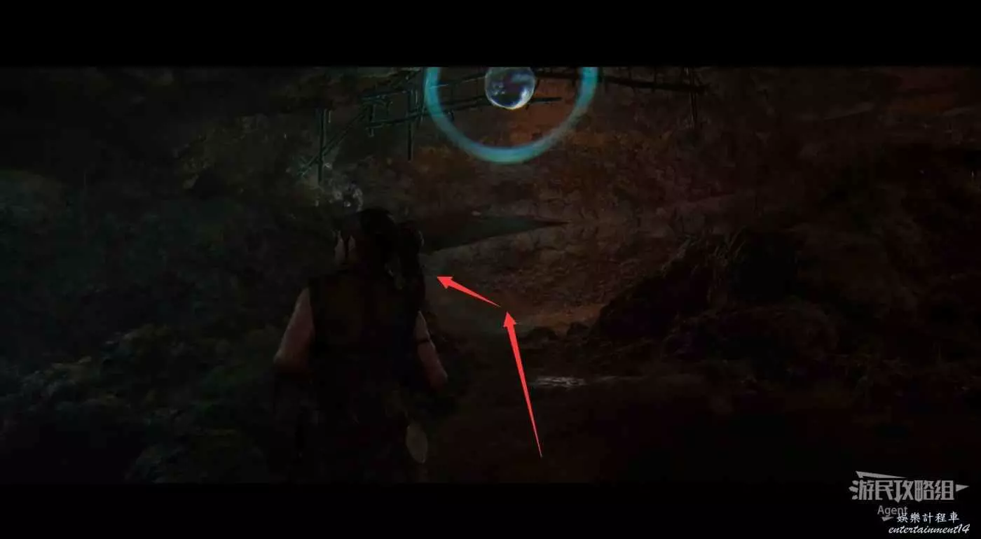 進入下圖位置的發光處後,隔著廢墟再次聚焦水珠。