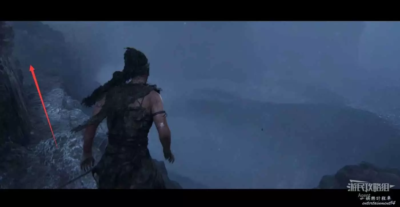 爬上來後往前走,路邊看到屍體,來到懸崖邊看到海浪,左拐走過窄道。