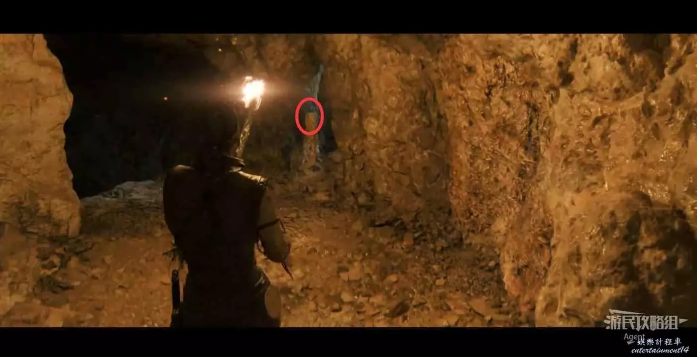 穿過瀑布水流後,手裡的火把熄滅了,左拐找到剛才點燃的牆邊火炬,就可以再把火把點燃。