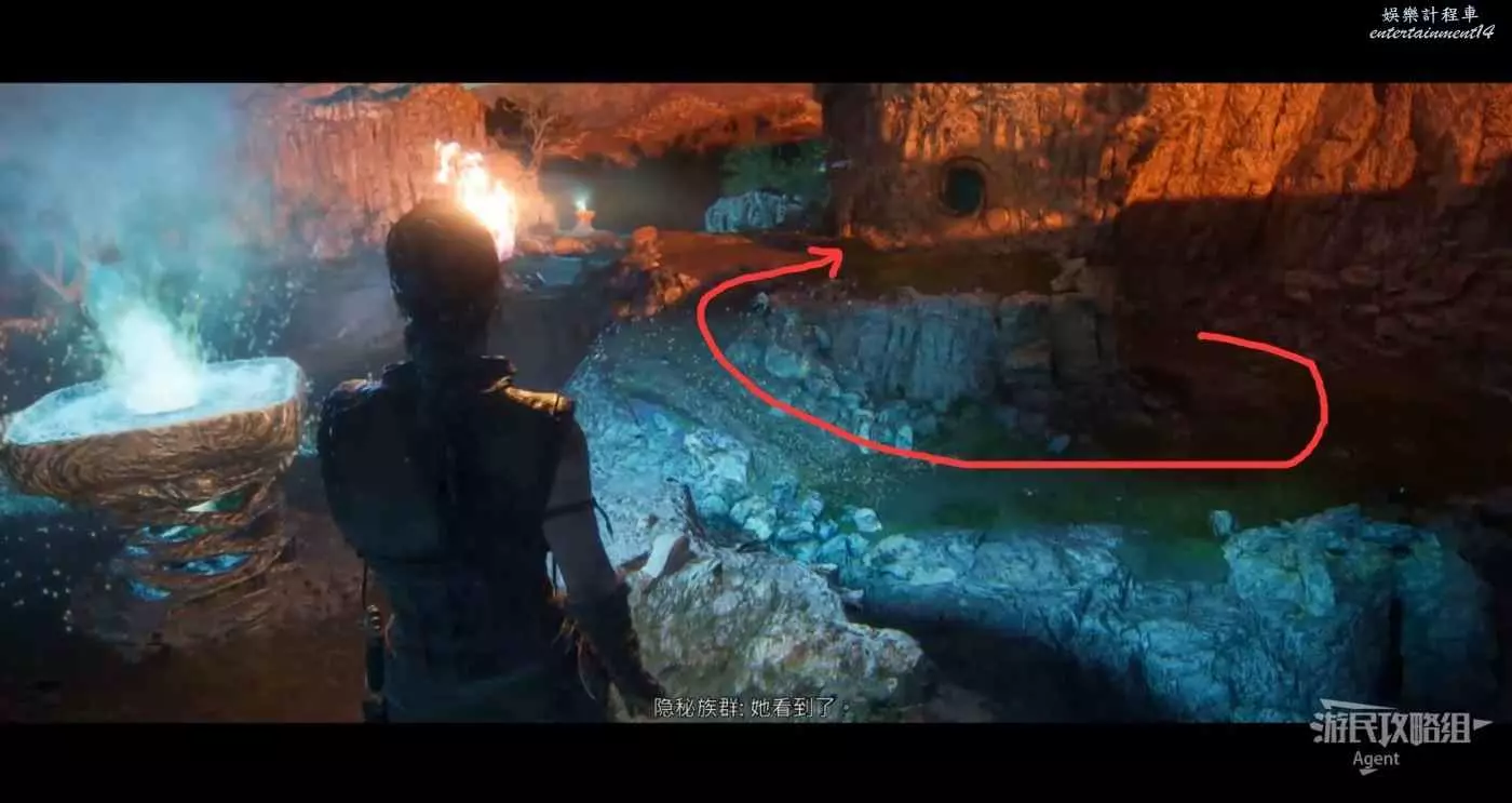 回到本頁攻略最初的地方,熄滅本頁最初你點燃的這個火盆,面前就會出現個洞。