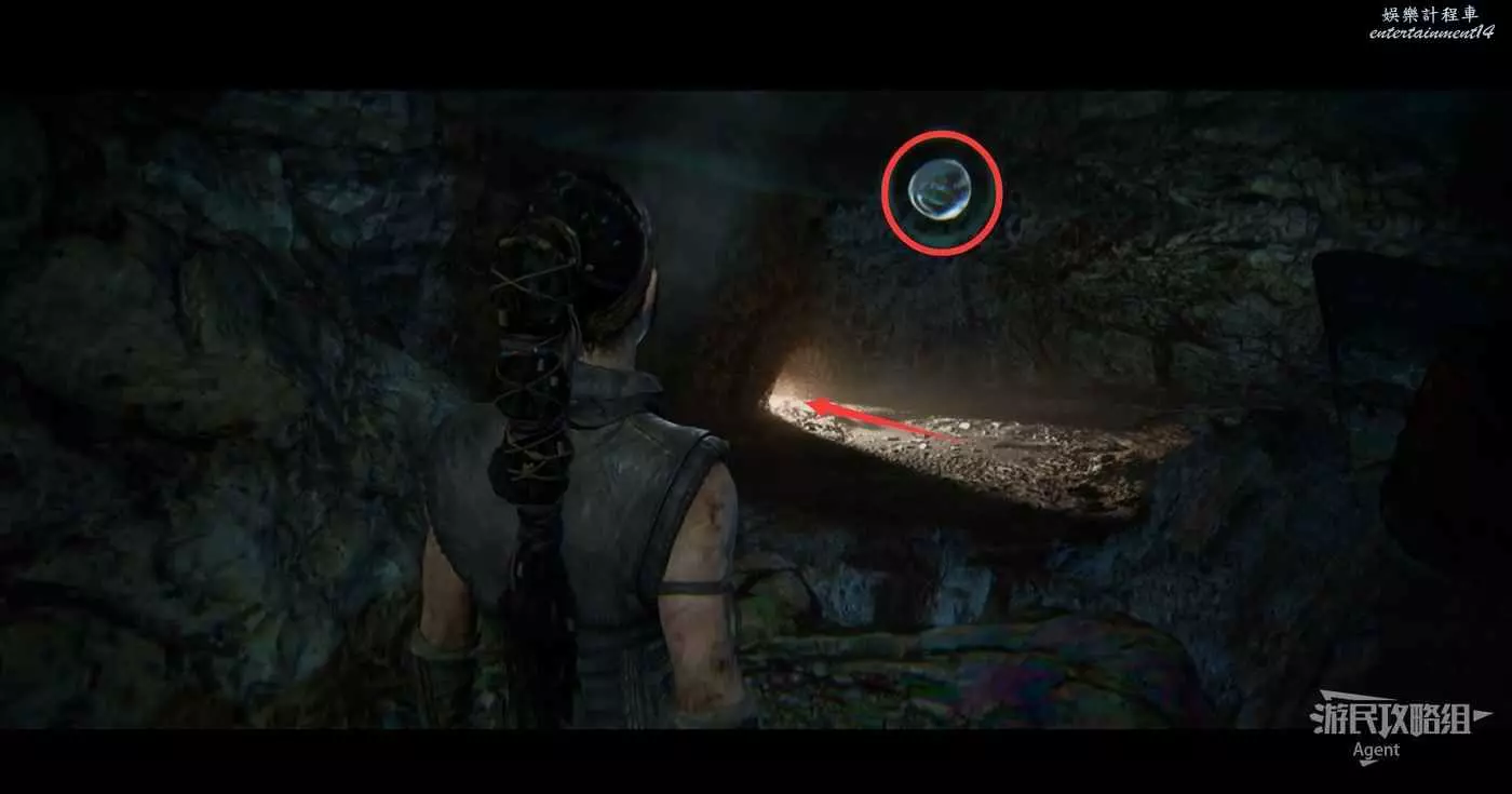 來到對面,熄滅剛才那個人影幫你點燃的火盆,上坡會消失,鑽進面前的洞。