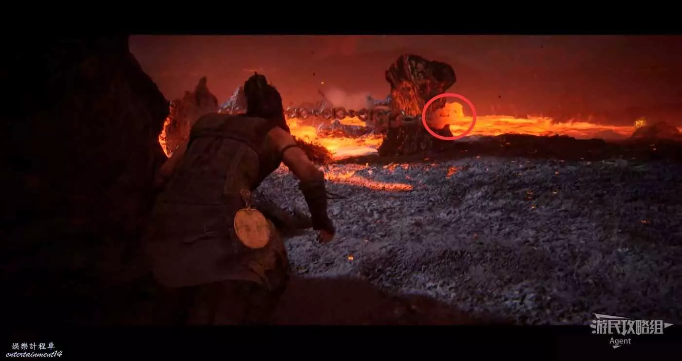 拿到小骸骨後,來到滿地岩漿的地方打巨人。