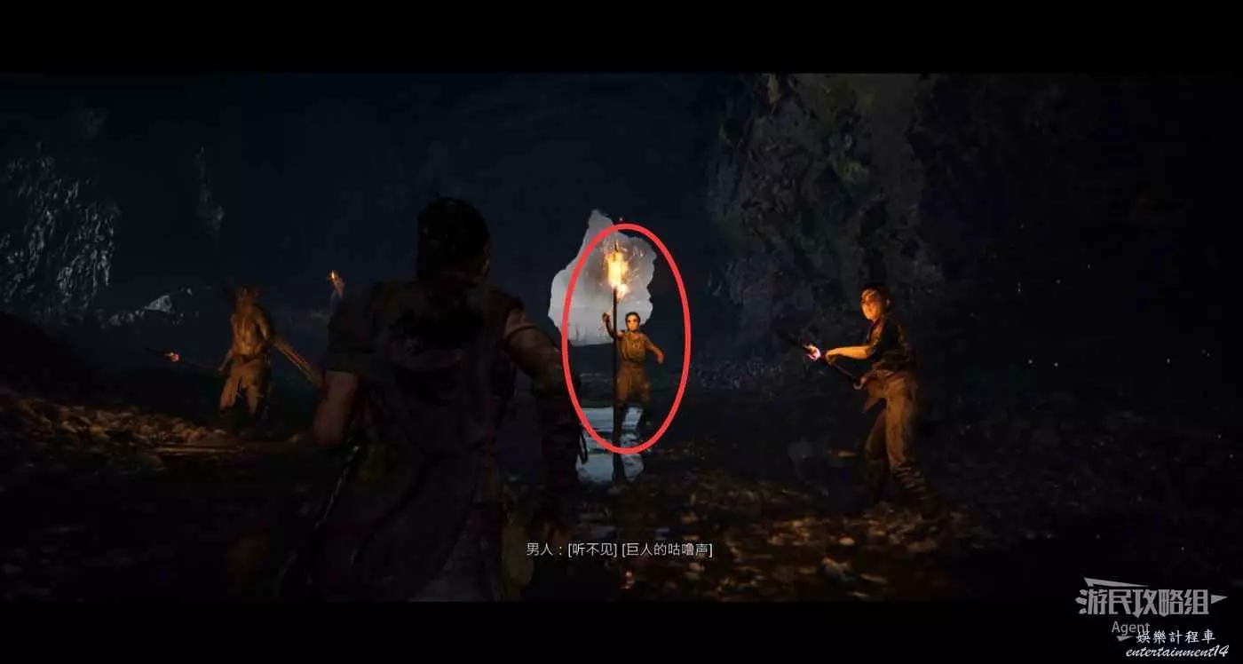 和隊友們一起進入巨人的洞穴,被巨人追著跑時,隊友會幫你點燃路上的長矛。跑過去拿起點燃的長矛,朝巨人身上扔。