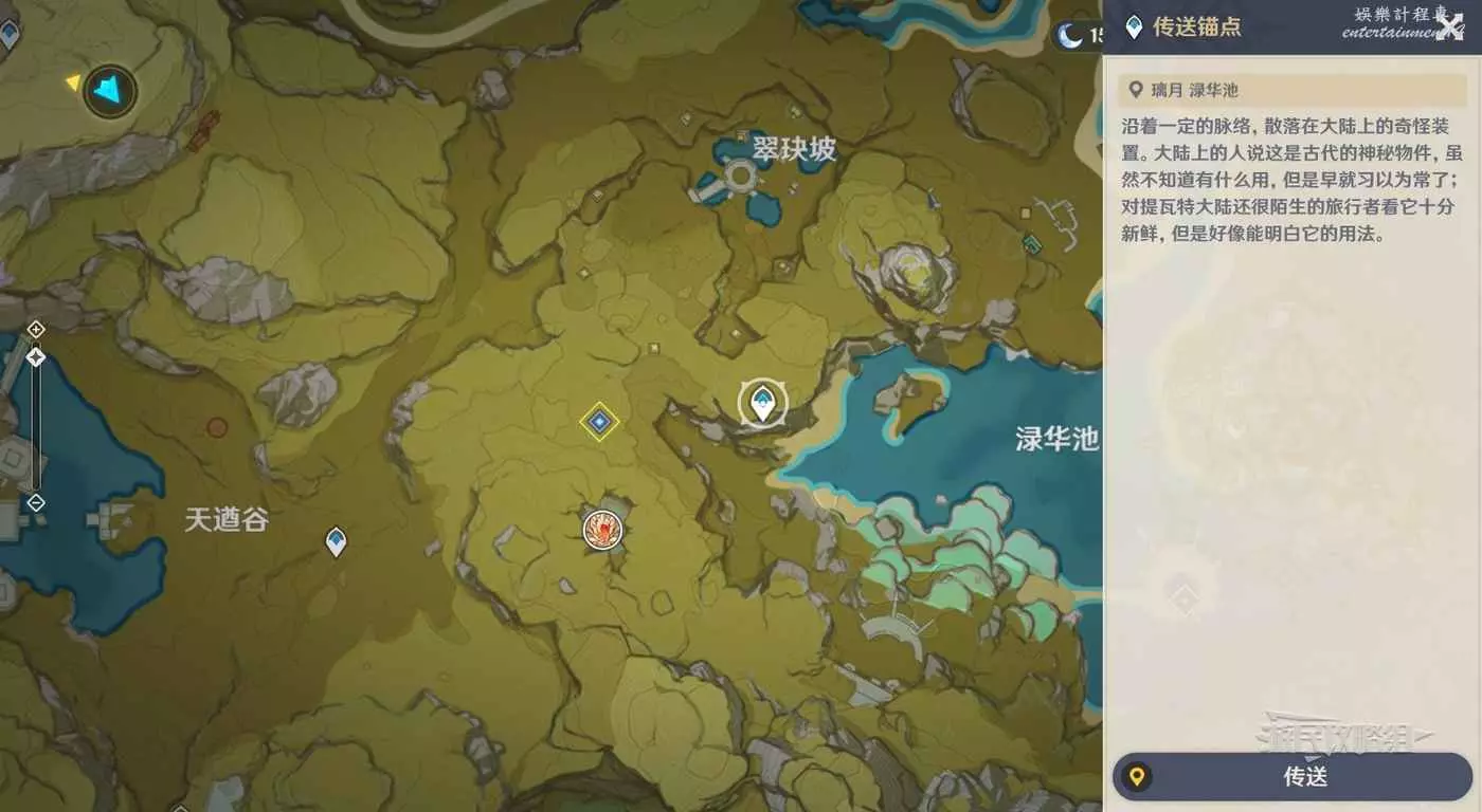 活動開啟後,傳送到璃月淥華池左側傳送錨點,前往目標位置尋找NPC。
