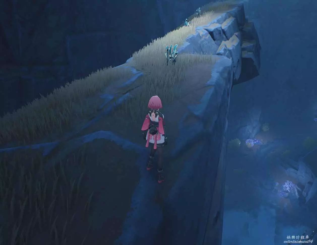 建議在此放置一個臨時信標方便傳送前往,這處洞窟內各處岩壁上都有輝螢石,相當考驗漂泊者們飛簷走壁的能耐呢。