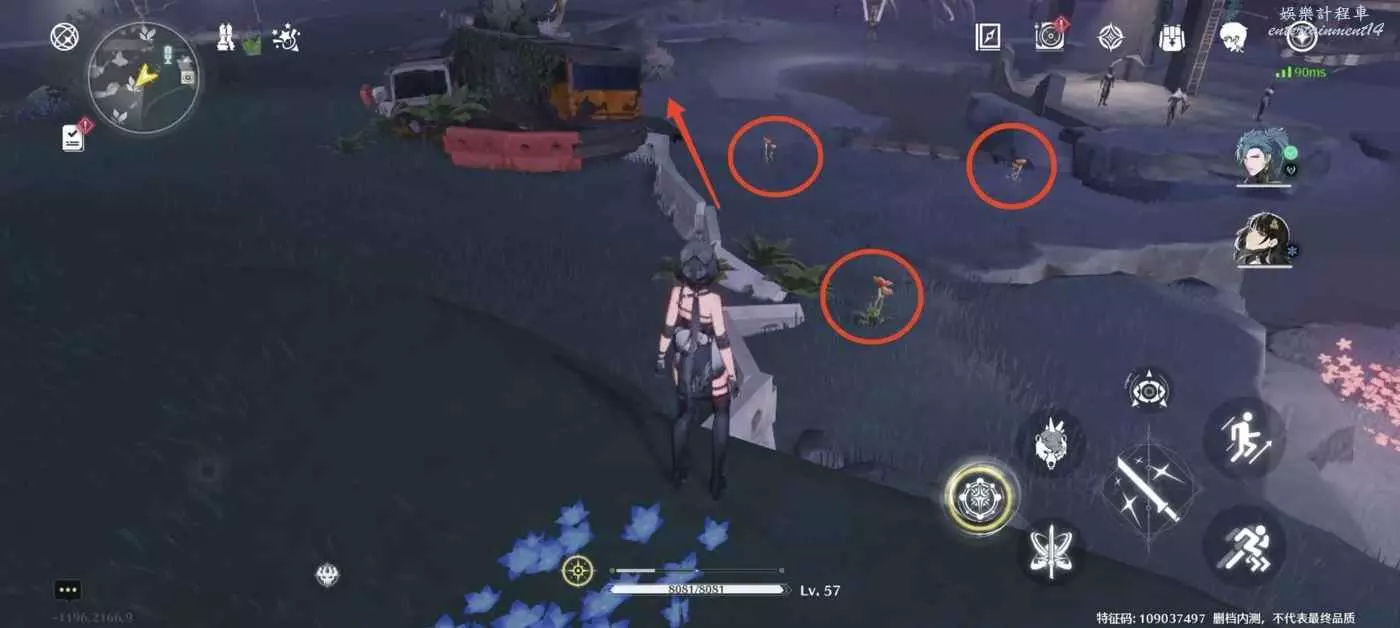 爬上一個小高台有4個,繼續往東南方向(小地圖右下角),前面有一輛漂浮的車