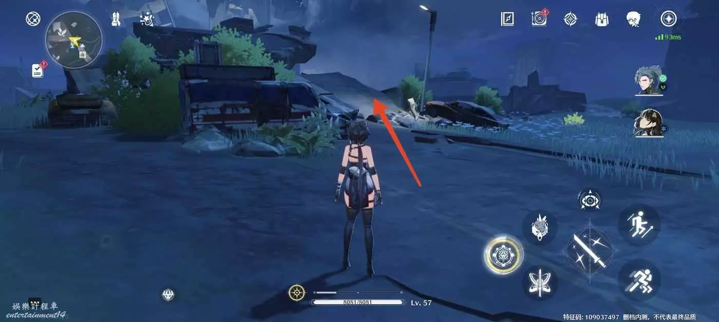 朝東北方向(小地圖右上角),有幾輛漂浮的車