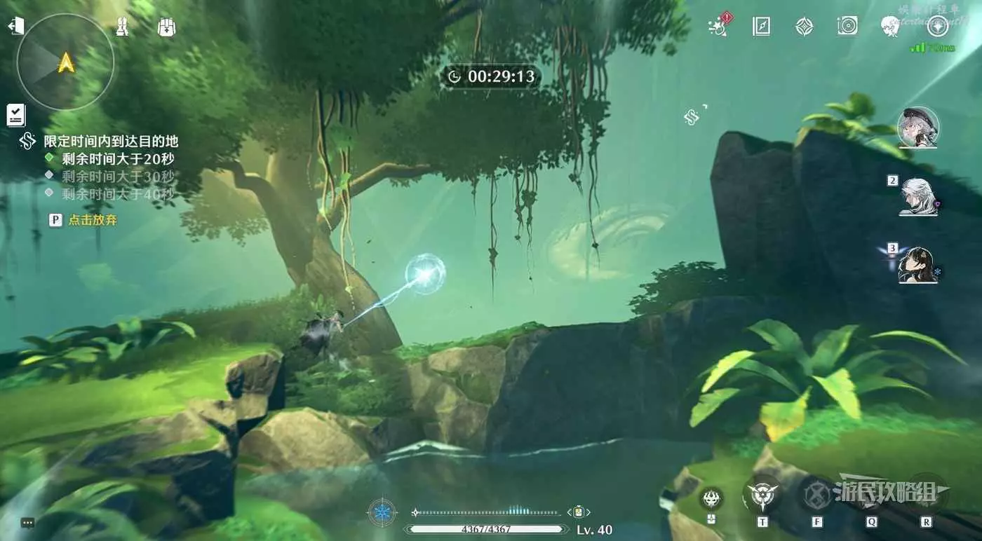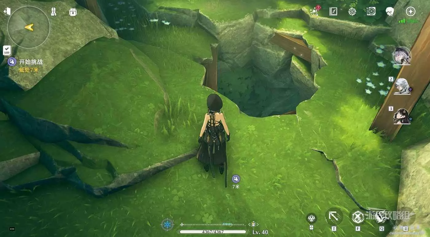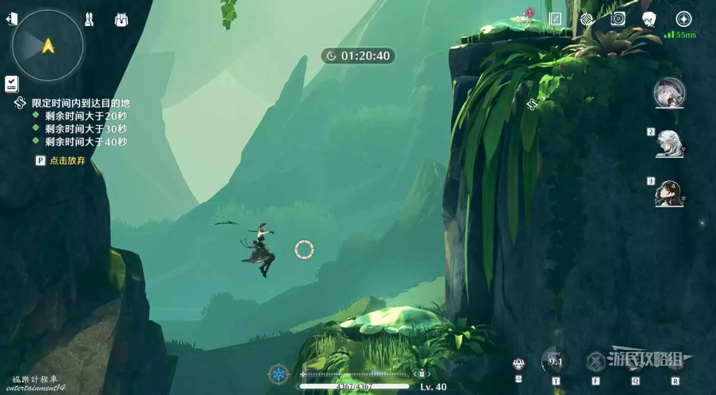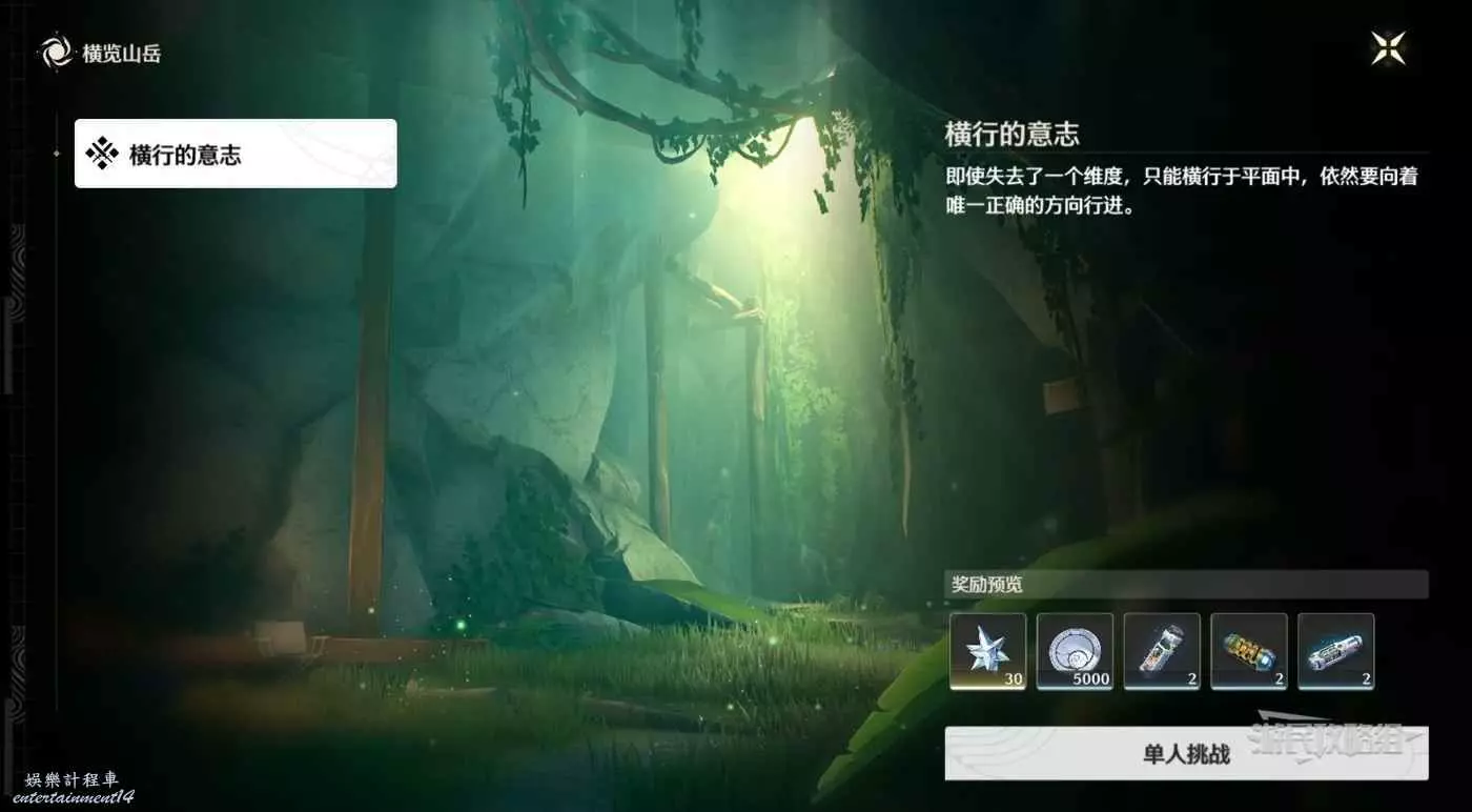 對話完畢後,跳下前方的山洞裡挑戰就會開始。這裡是需要在限制時間內通過橫版關卡,可以掉血,但不能死亡。可以重複挑戰。