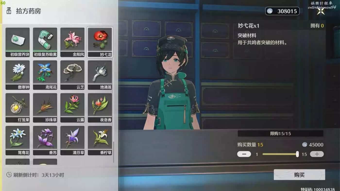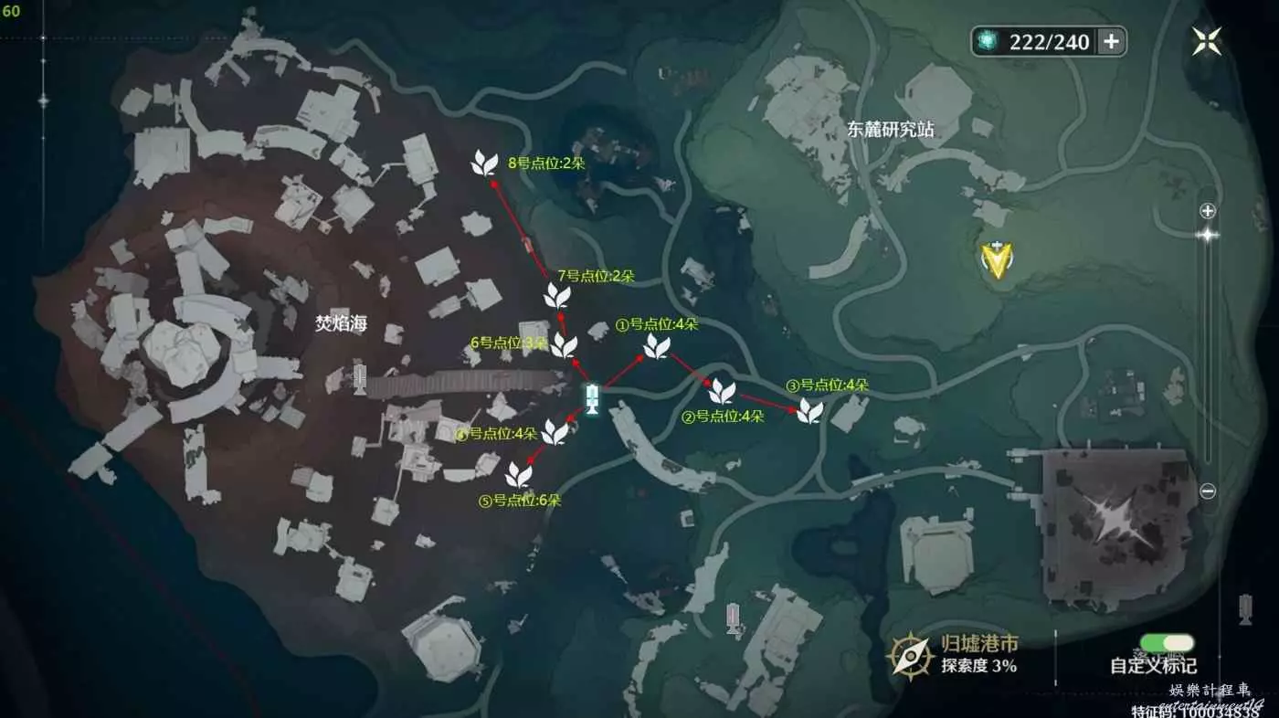 鳴潮 (Wuthering Waves) 妙弋花採集攻略 24 5 月 2024-05-24 廣告 作者:小沐XMu 來源:kurobbs 目前只在大世界找到了29朵妙弋花加上拾方藥房購買15朵一共是44朵。 購買 拾方藥房購買15朵(45000貝幣)每週刷新 大世界採集29朵 ①號點位4朵 ②號點位4朵 ③號點位4朵 ④號點位4朵 ⑤號點位(1)3朵 ⑤號點位(2)3朵 ⑥號點位3朵 ⑦號點位2朵 ⑧號點位2朵