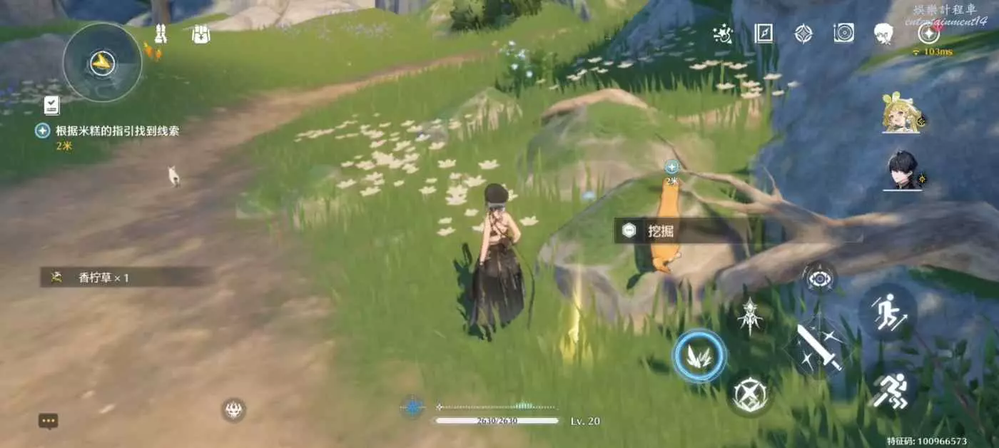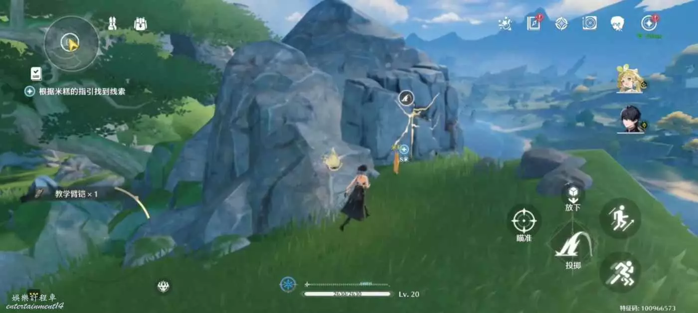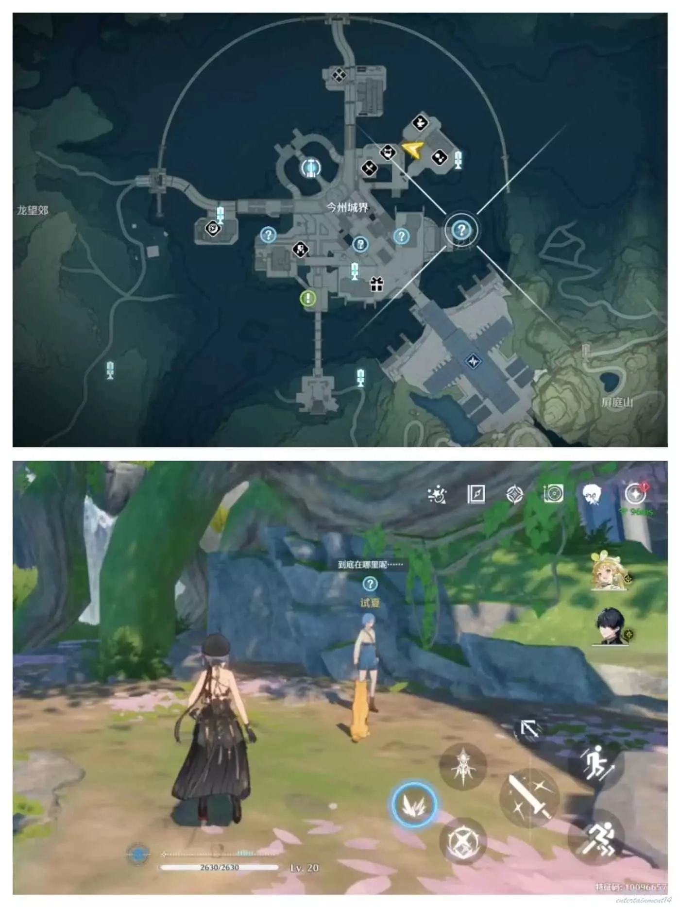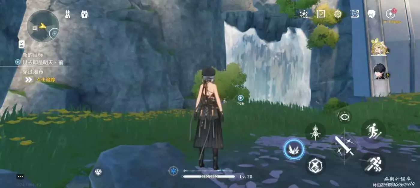 接取任務後,切換探索模組的感知幫忙尋找試夏的禮物。隨著指引穿過瀑布來到第一棵樹下。