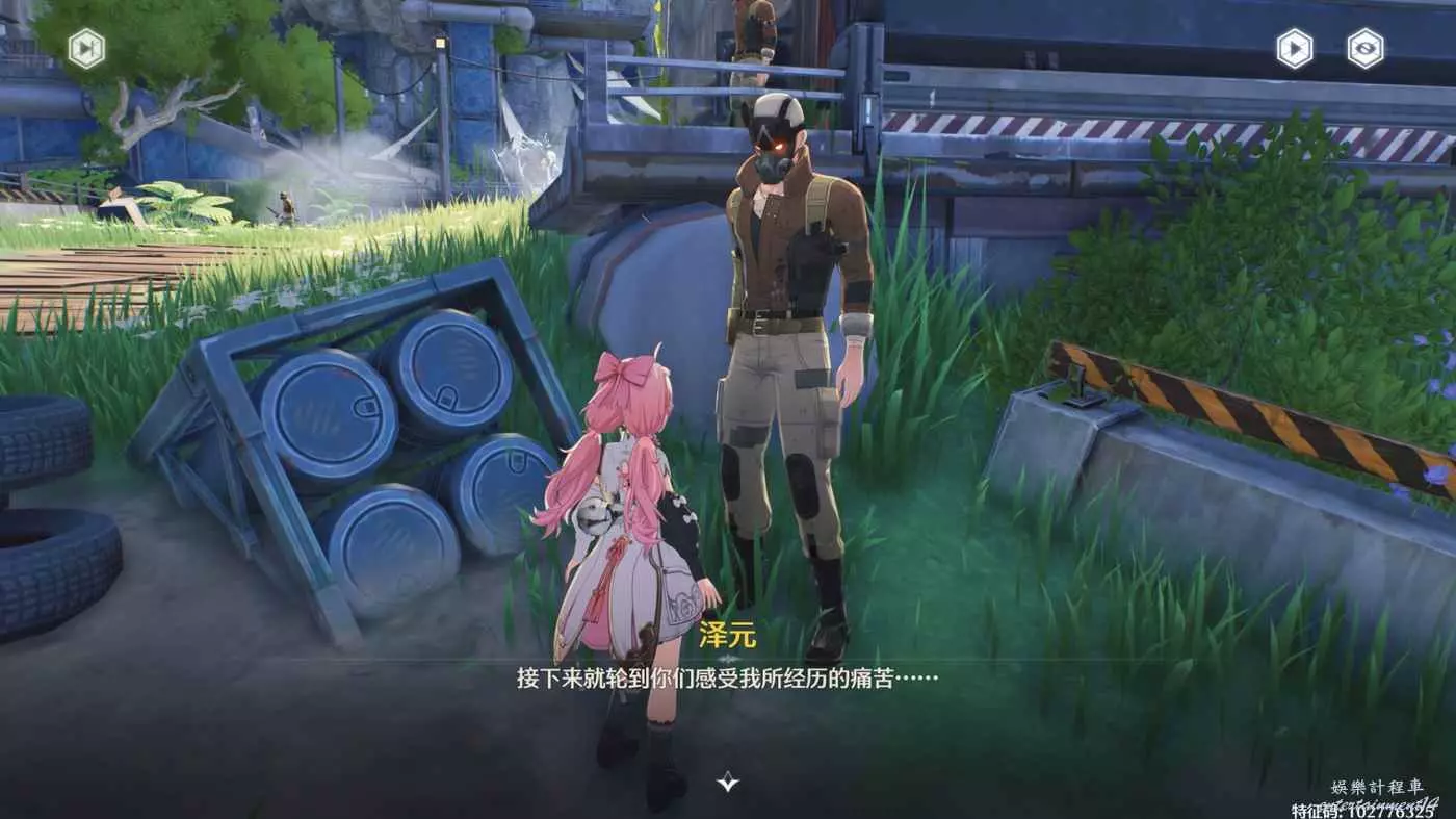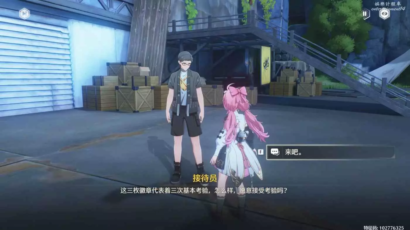 接下來跟著指引來到營地大門與澤元對話,澤元讓你在營地裡轉轉,前往營地中央和右側與標點人物對話。之後去營地左邊找到澤元,澤元讓你找接待員開啟三大試煉拿徽章