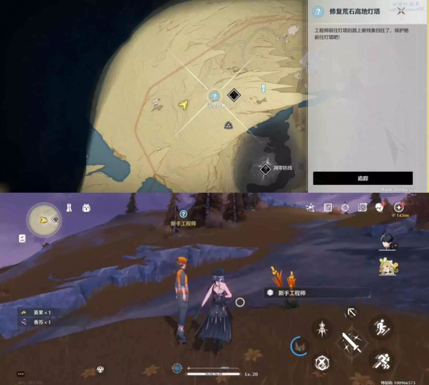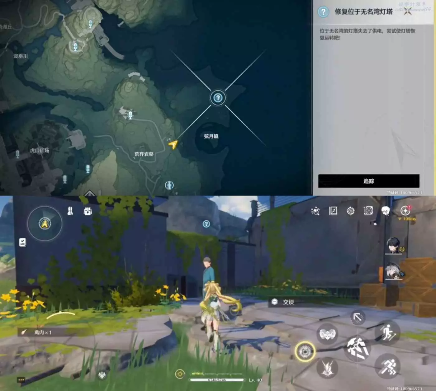 根據任務提示,護送這位工程師上燈塔,為她清理聲骸開路。工程師們修復好電路,爬上燈塔操作屏駭入破譯。