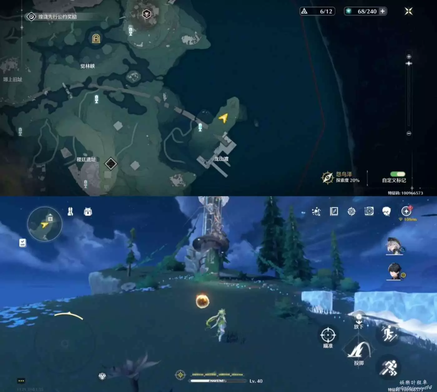 最後一處,位於龍山渡信標附近的崖上。也是需要借用控物火種燒荊棘,然後爬塔。