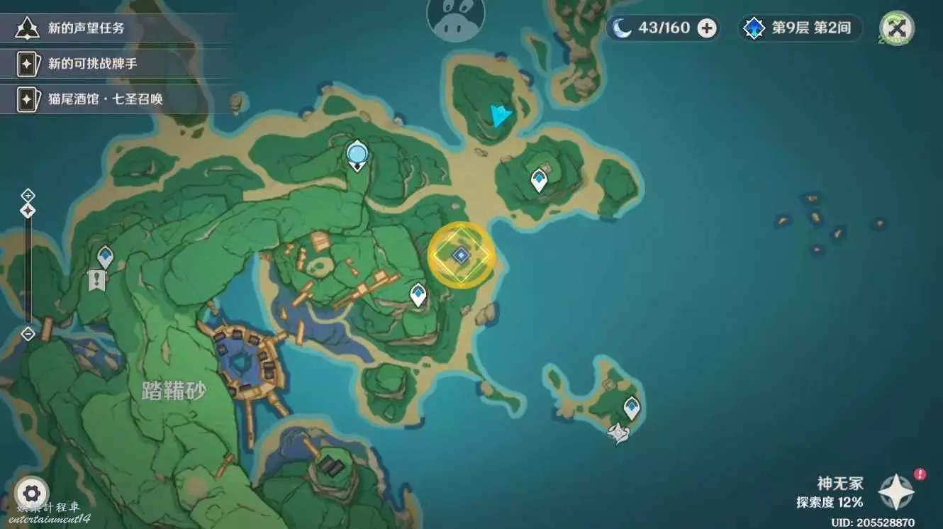 在稻妻踏韝砂圖中位置。可以從右下角錨點或七天神像傳送後走到。