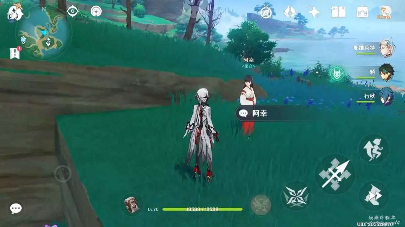 然後與一位叫阿幸的巫女對話。得知最近盜寶團在謀劃什麼事情,她叫我們去探查一下。
