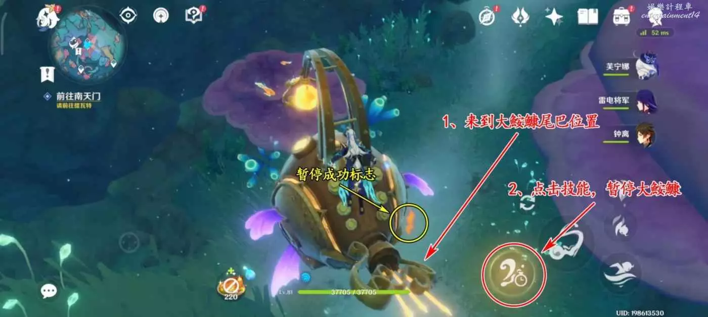 1、來到黃金大鮟鱇背後,利用樂章技能暫停黃金大鮟鱇的行動。