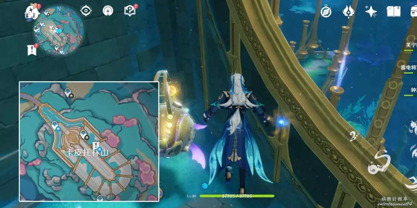 黃金宮殿外牆根,此次黃金大鮟鱇處於靜止狀態,並且看守仙靈。