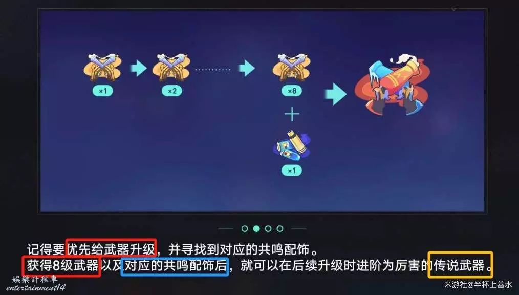 武器升級到8級以後,並且有對應的共鳴配置就可以合成傳說武器,傳說武器是後面主要輸出來源,所以傳說武器合成的越早越好;