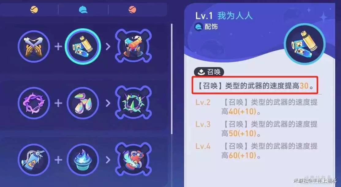 配飾的屬性提升不僅僅是對應的共鳴武器,屬性提升是針對所有角色或者武器,比如【我為人人】,獲取之後會提升所有召喚物的速率,不僅僅是武器【人人為我】,這個要清楚;