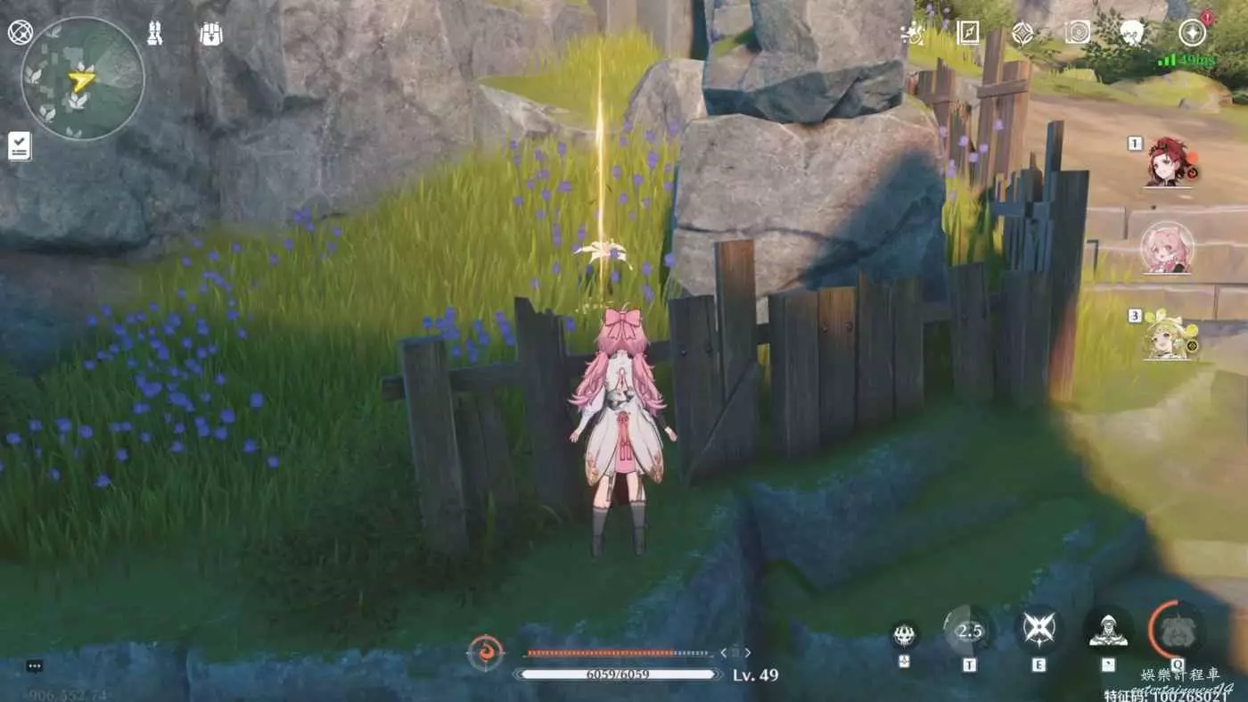 往東,地圖右側,圍欄裡,可能被岩石擋住,共1朵