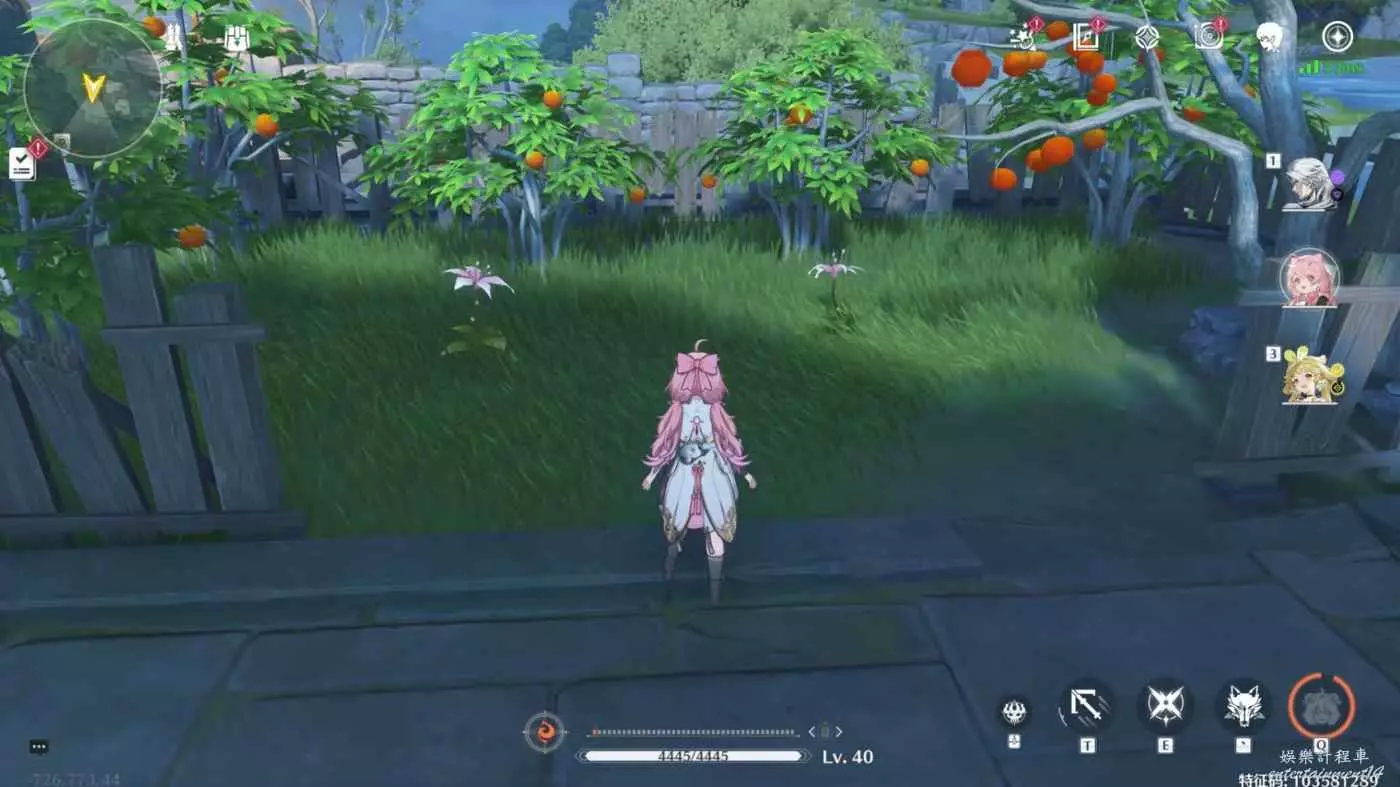 往西北,地圖左上方,果樹下+圍欄外,共2+3朵