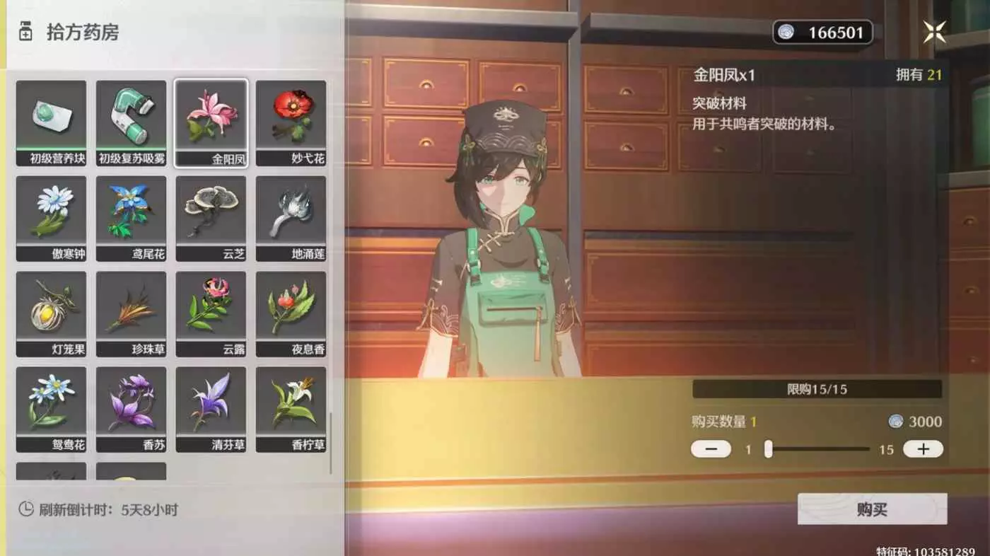 拾方藥房,今州城界最底層,購買15朵,商店1周刷新一次