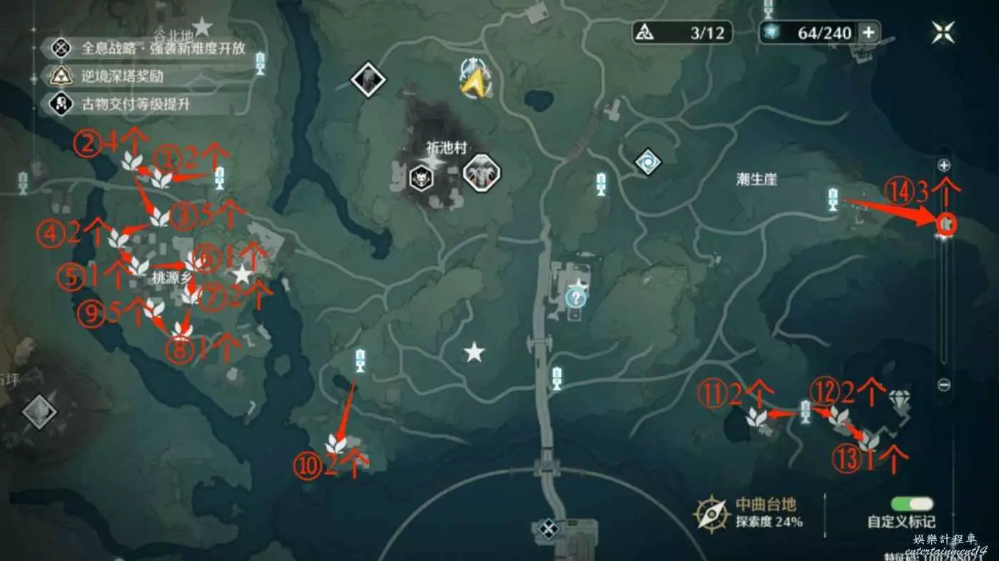 高效收集路線的點位序號與全收集路線點位序號一致,所以沒有單獨放出來,找不到的按照序號參考全收集點位即可。