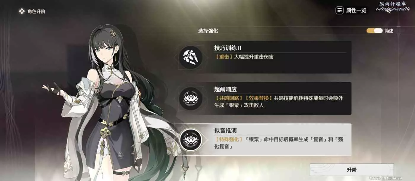 後續推薦強化這兩個技能,其次就是普攻傷害強化,其餘幾個不推薦,注意不要強化共鳴解放!因為在護盾流裡,共鳴解放是為了保證容錯率的,那個有可能會影響到容錯率,慎點,其次共鳴解放並不是傷害主要來源,平時基本上用不上,所以無需掛心。