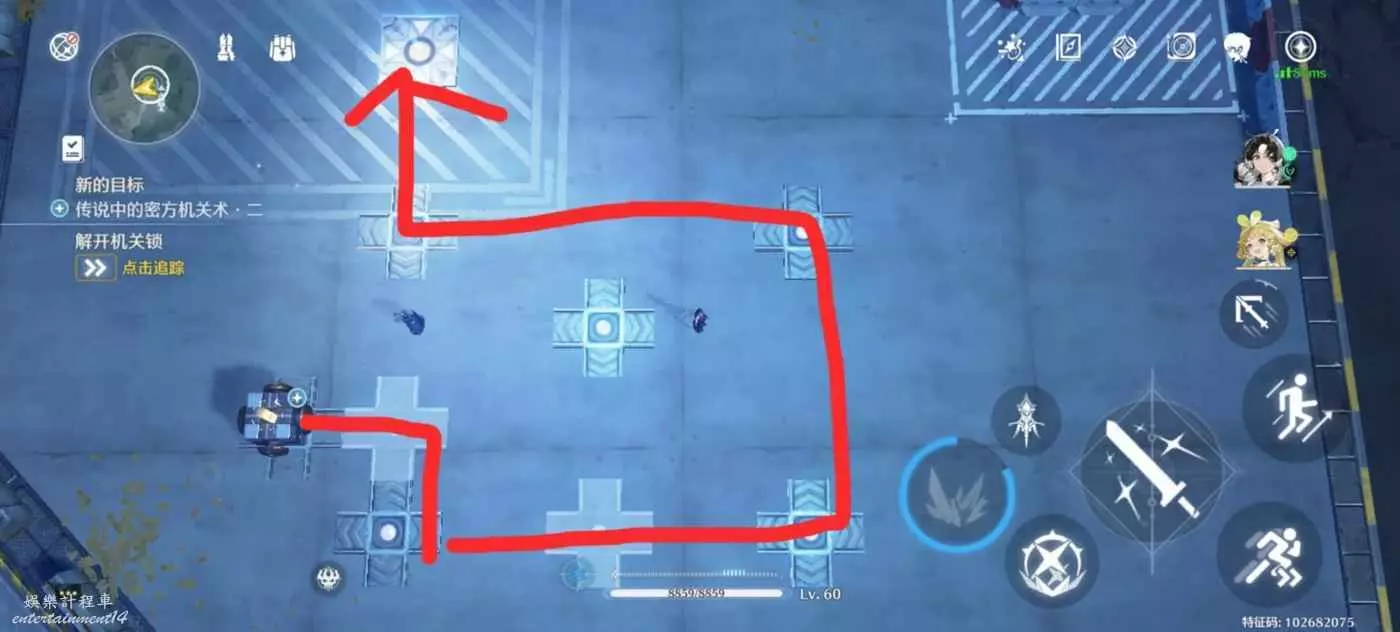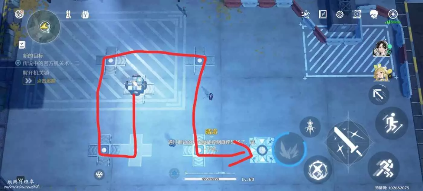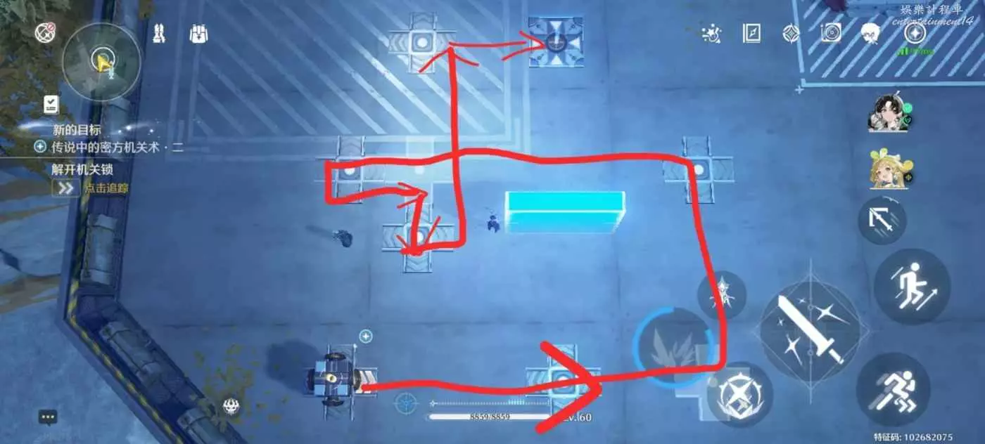 第二關:與操作台互動一次,右下,與操作台互動一次,右上左上。