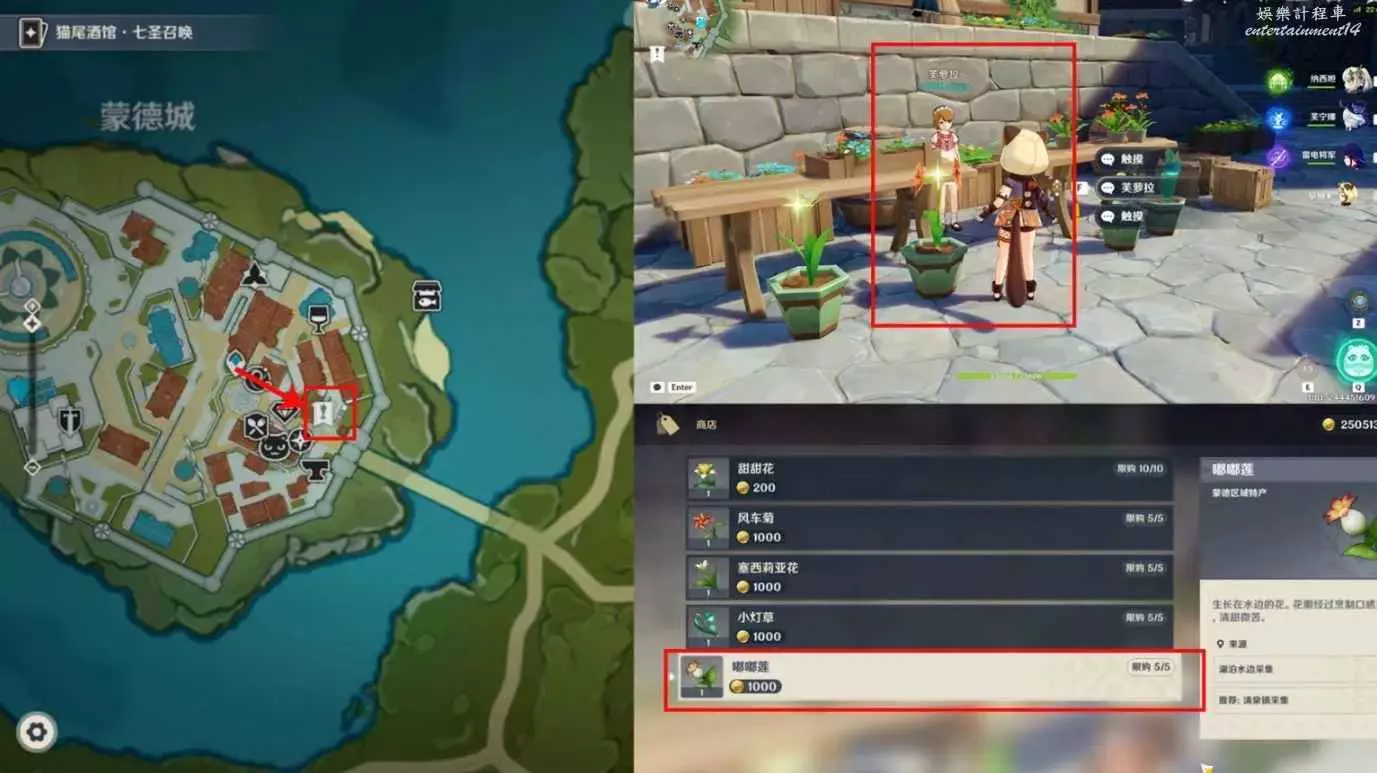 嘟嘟蓮可以在蒙德花店店主‘芙蘿拉’購買,每次購買五朵。