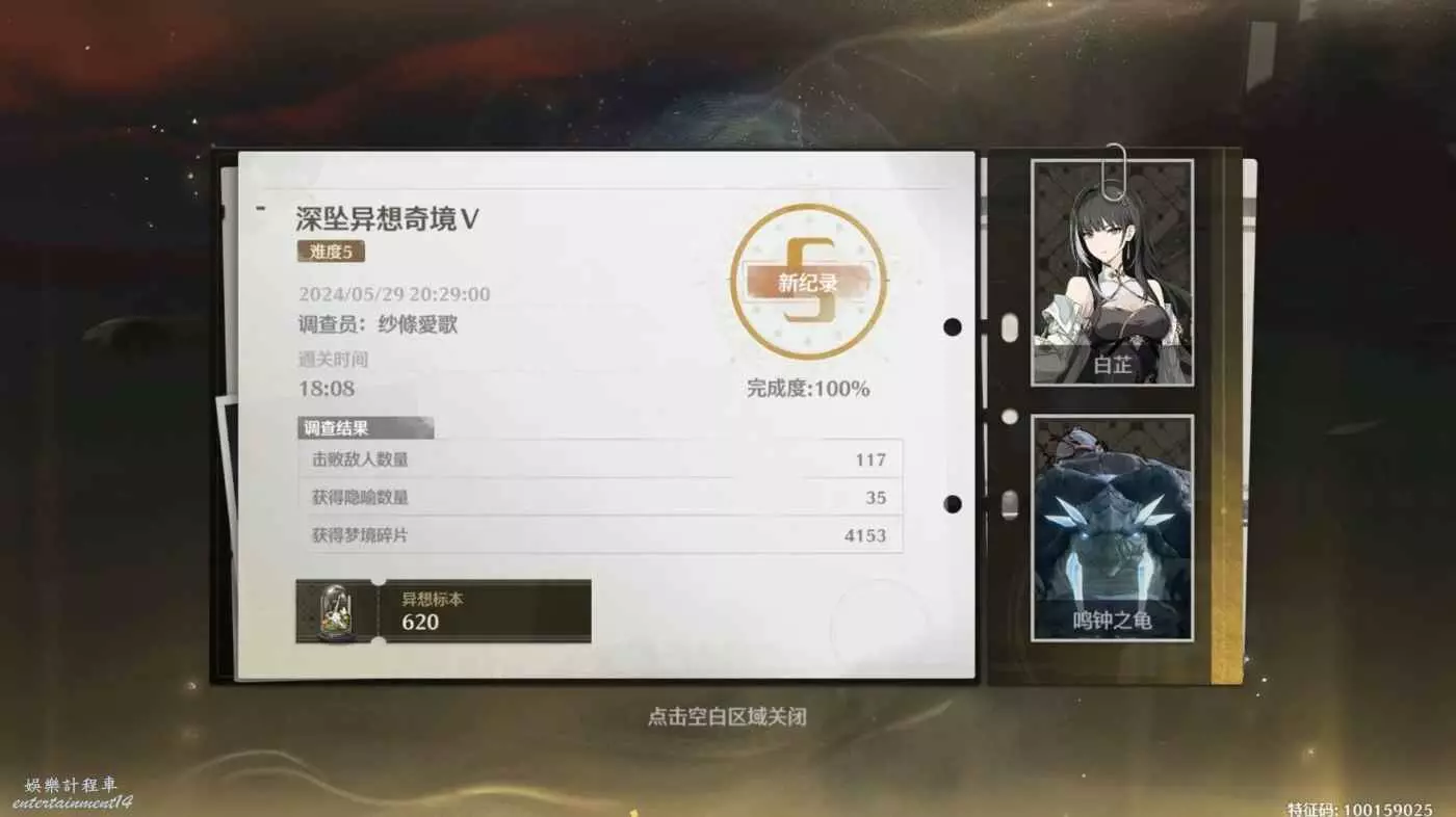 最後一關用的是50級白芷,用很少的資源拉了一下等級,然後臨時把安可四星紫武器給她帶著打了。
